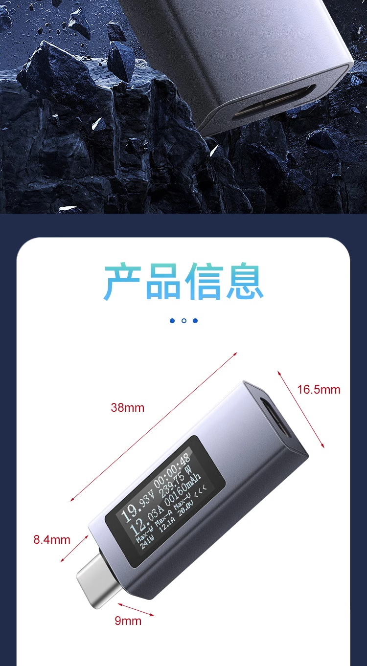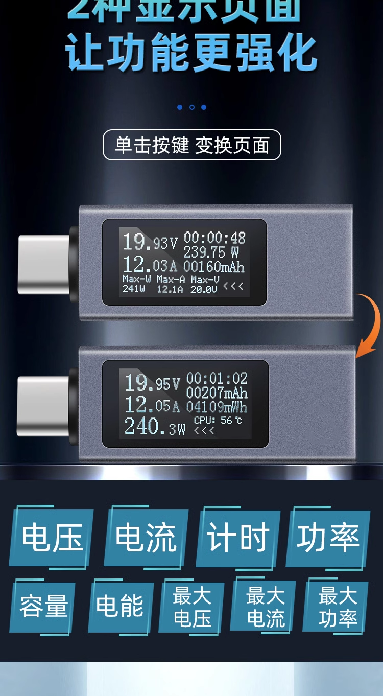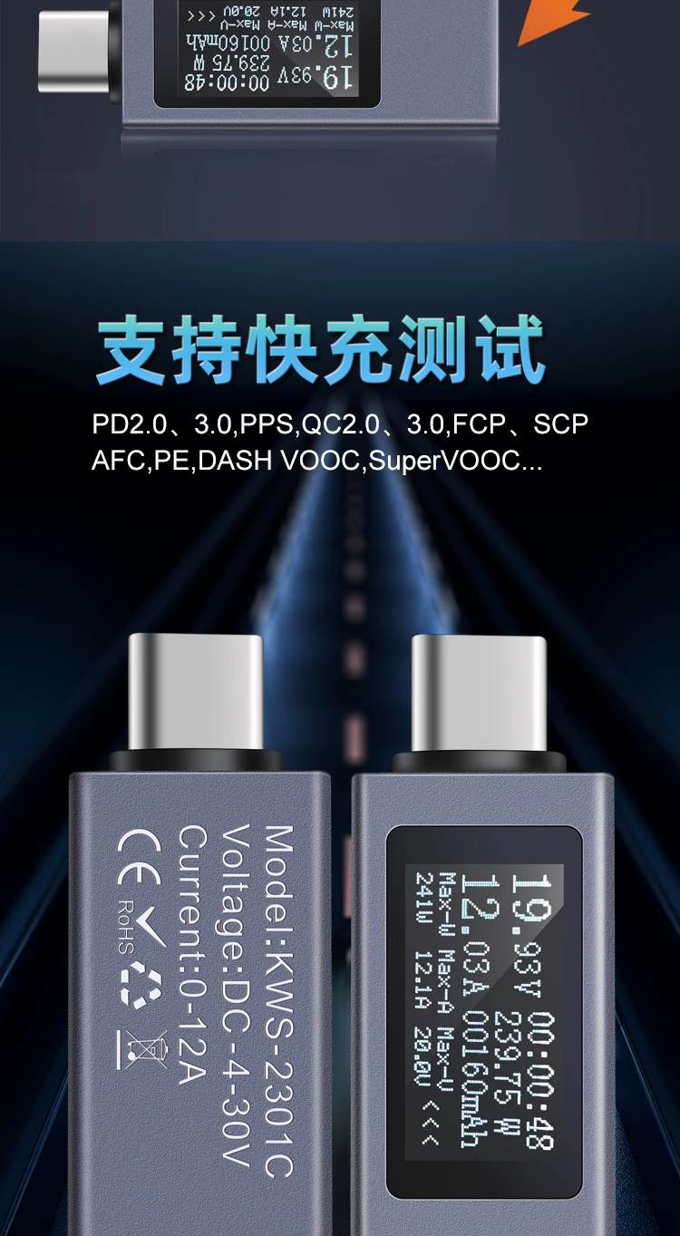 2301C多機能デジタル表示直流電圧電流計パワーメータType-c携帯電話充電検出器
