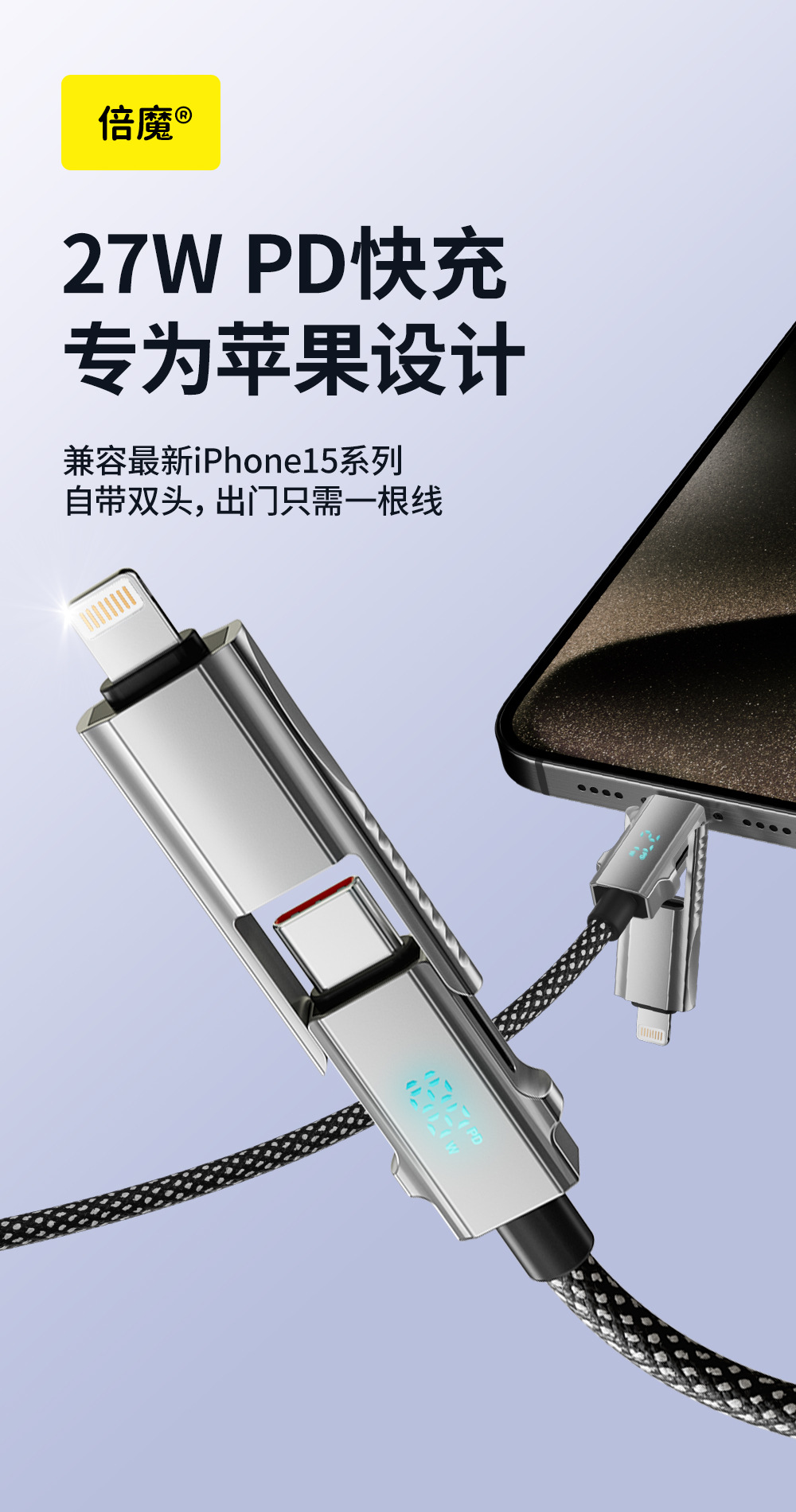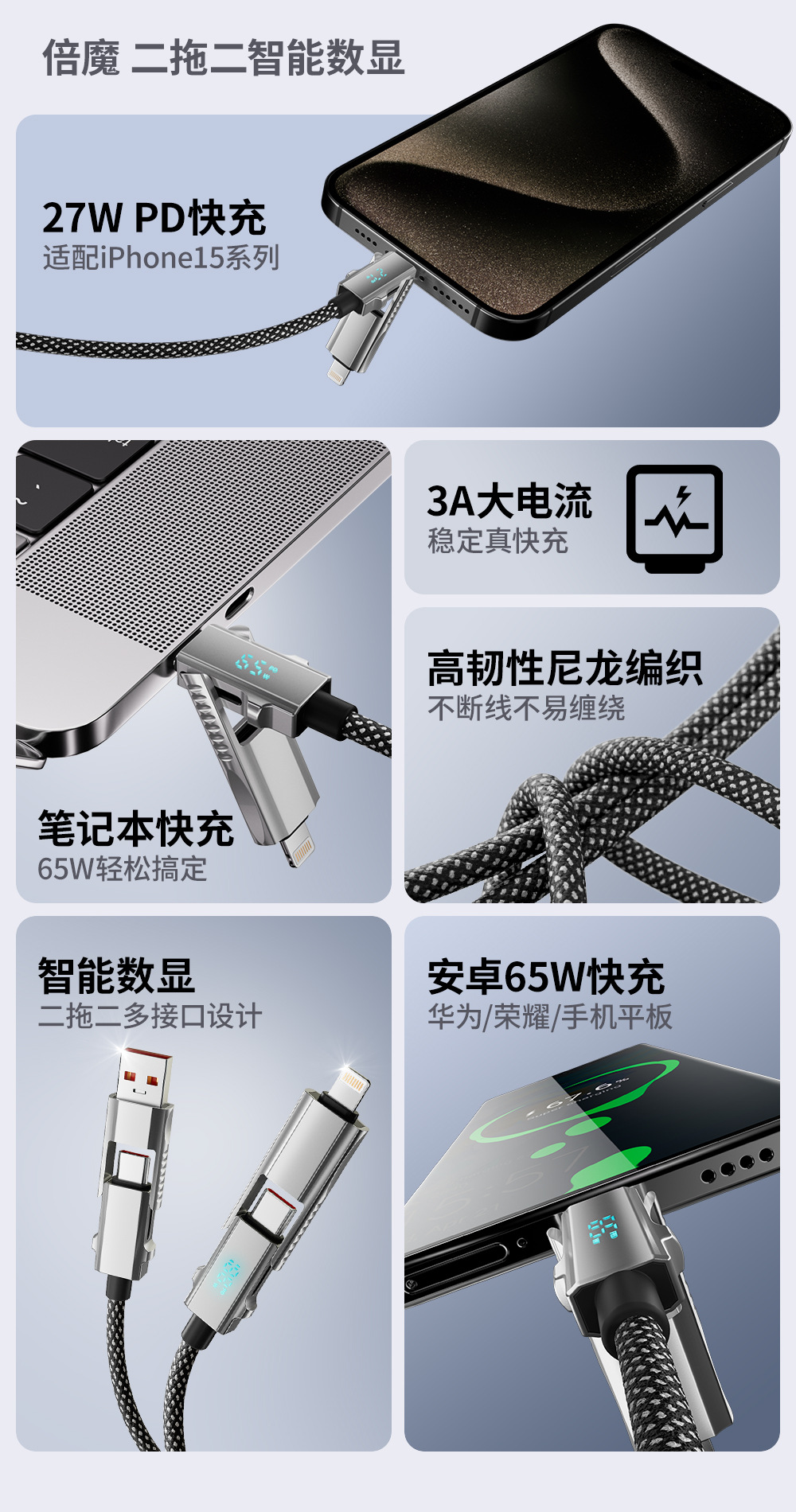 【超级闪充】倍魔新款超屏数显磁吸收纳数据线适用于苹果华为安卓