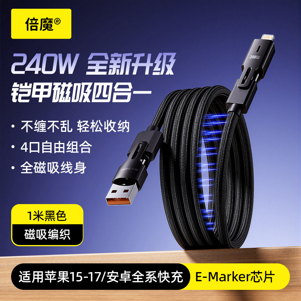 【工厂批发】倍魔240W磁吸收纳数据线超级快充适用苹果华为全系列