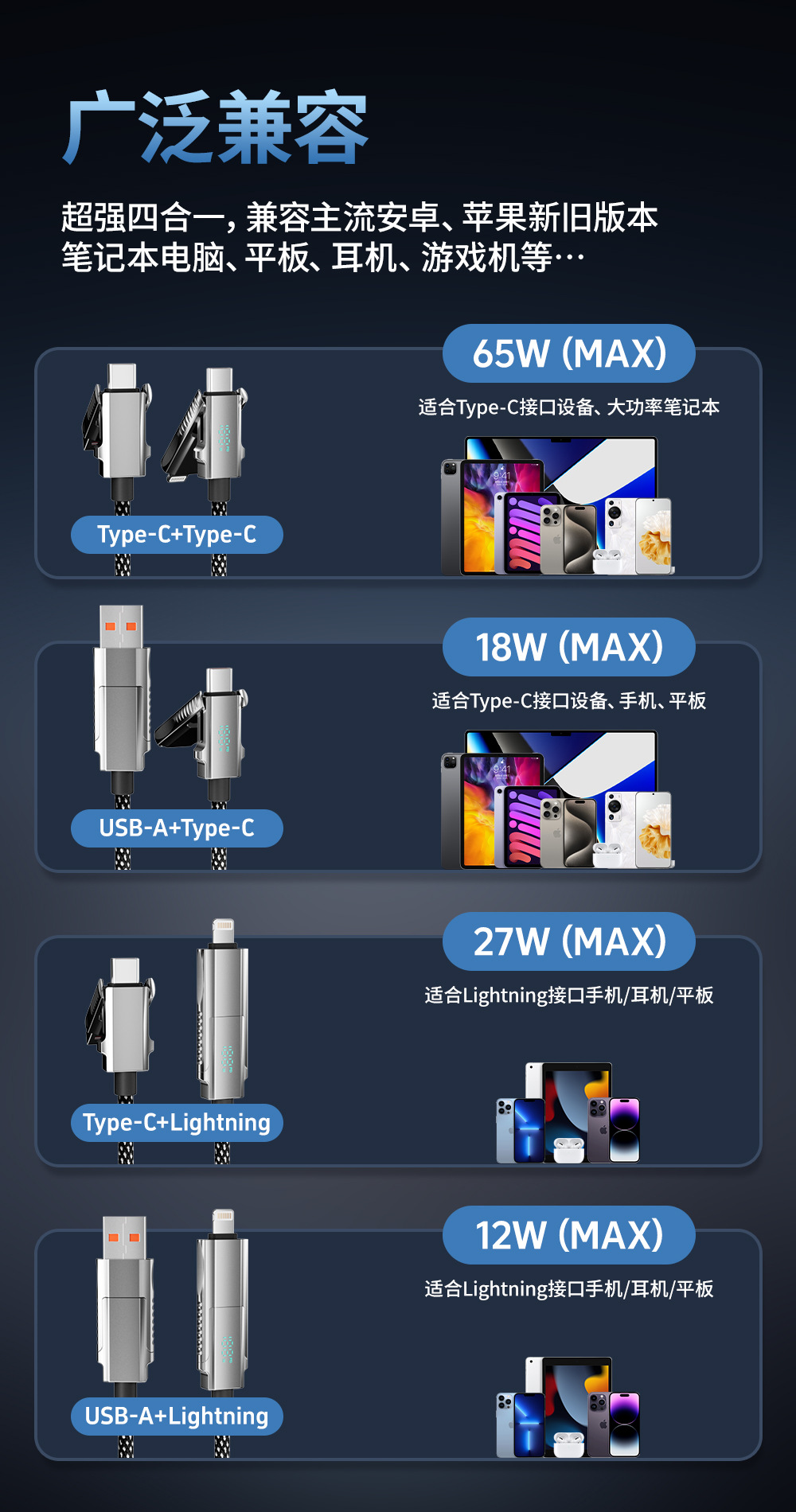 【優れた性能】倍魔亜鉛合金超急速充電データケーブル2in1 4in1急速充電 Apple対応