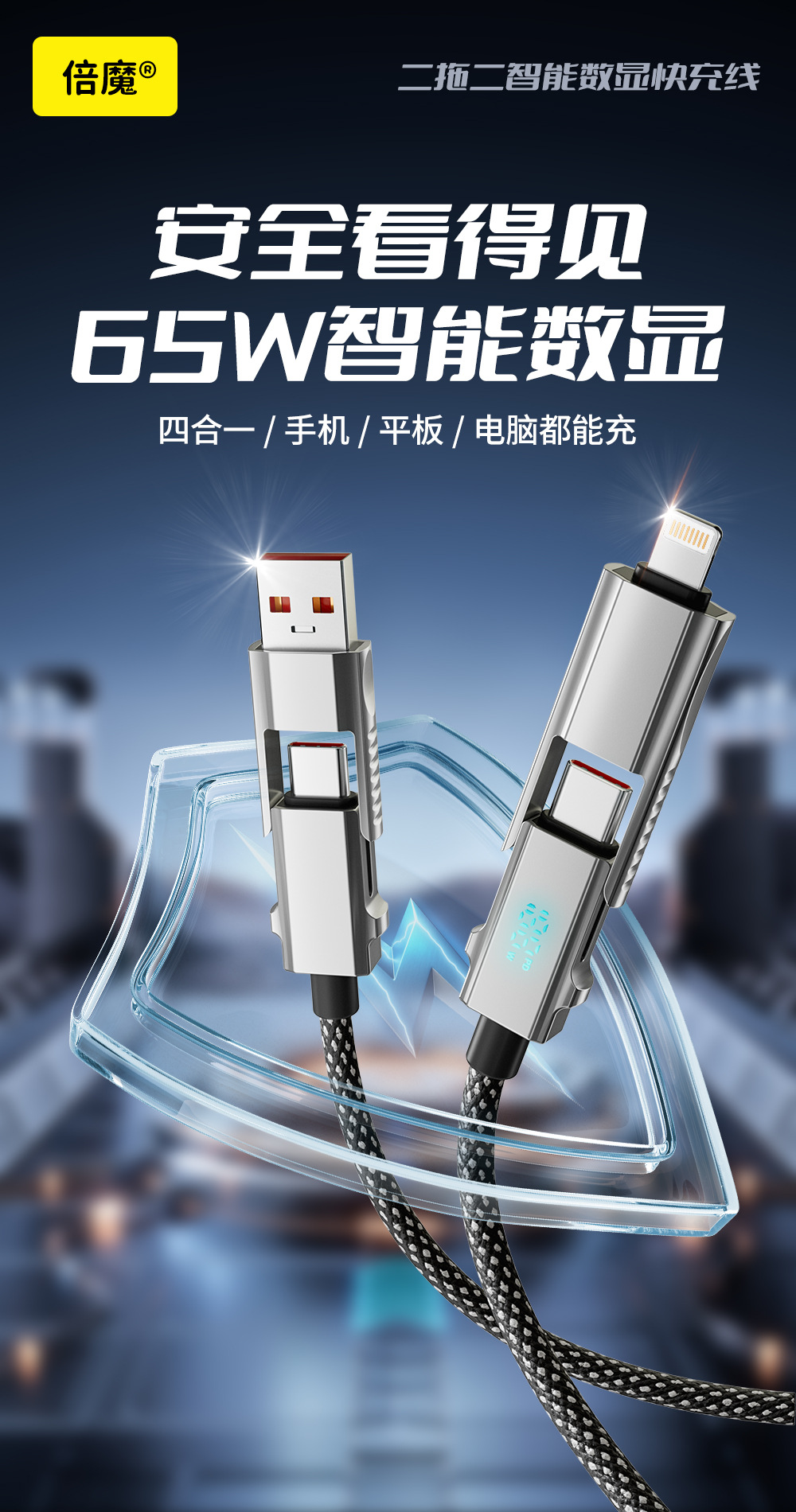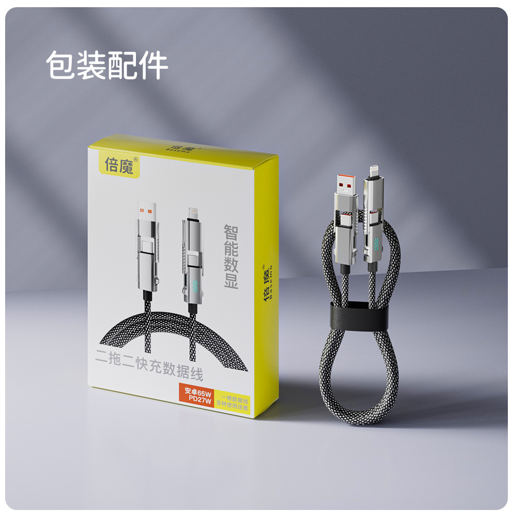倍魔データ線65w知能デジタル表示四合一超急速充電はリンゴ15華為編組急速充電に適用される