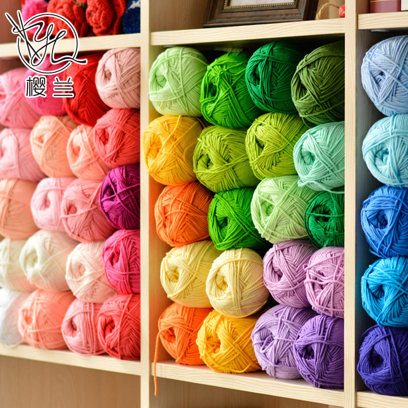 桜蘭の4株の精練綿の牛乳の毛糸団の手編みのdiyかぎ針の手作りの花の材料は赤ちゃんのセーターの糸を包みます。