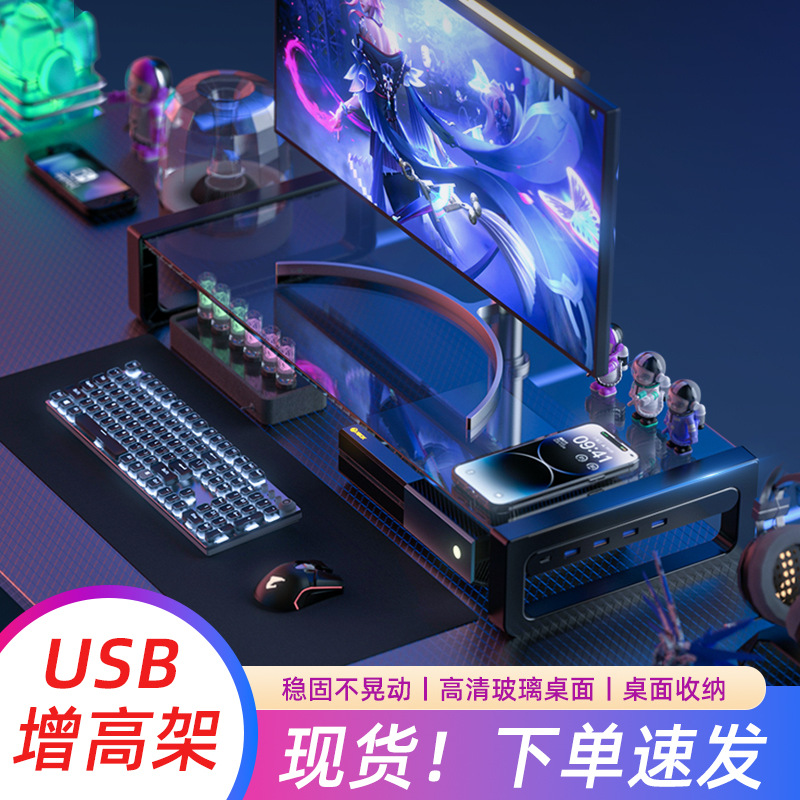 ディスプレイ高くなる棚パソコンスタンドディスプレイ台座usb3.0拡張イルミネーションデスクトップ収納