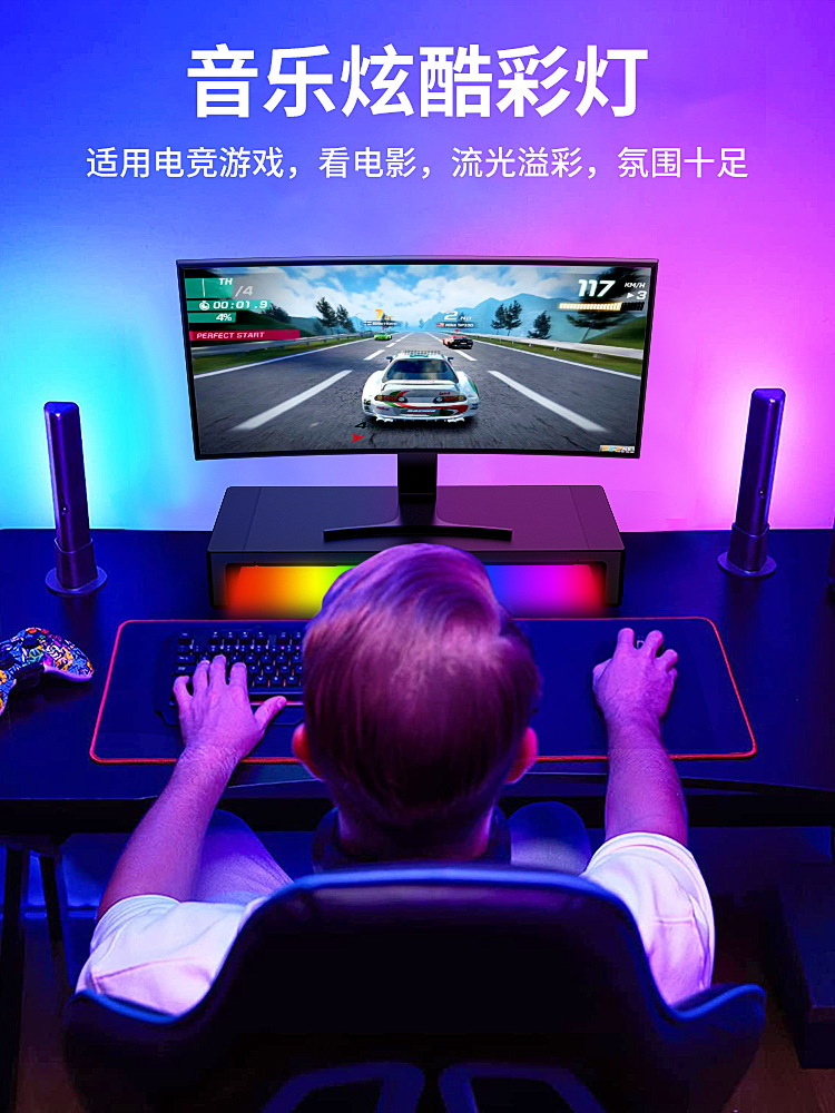 国境を越えたコンピュータモニター高架金属音楽クールなカラーライトUSB拡張オフィスディスプレイベース