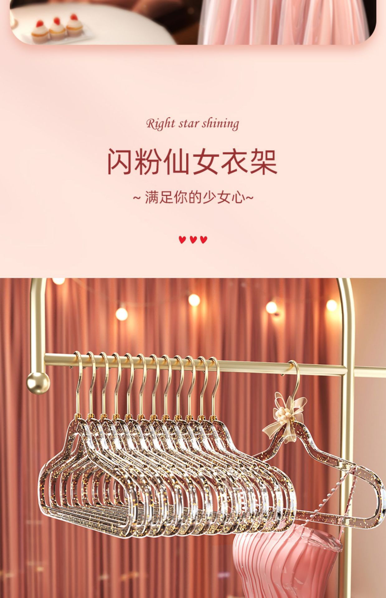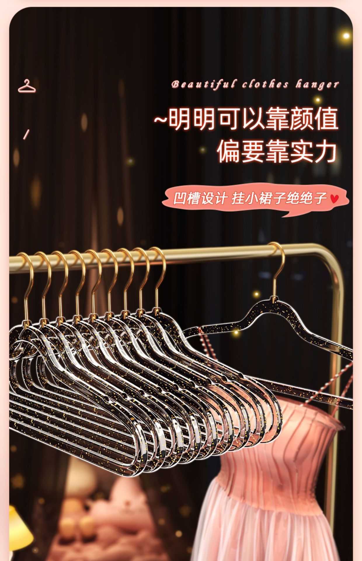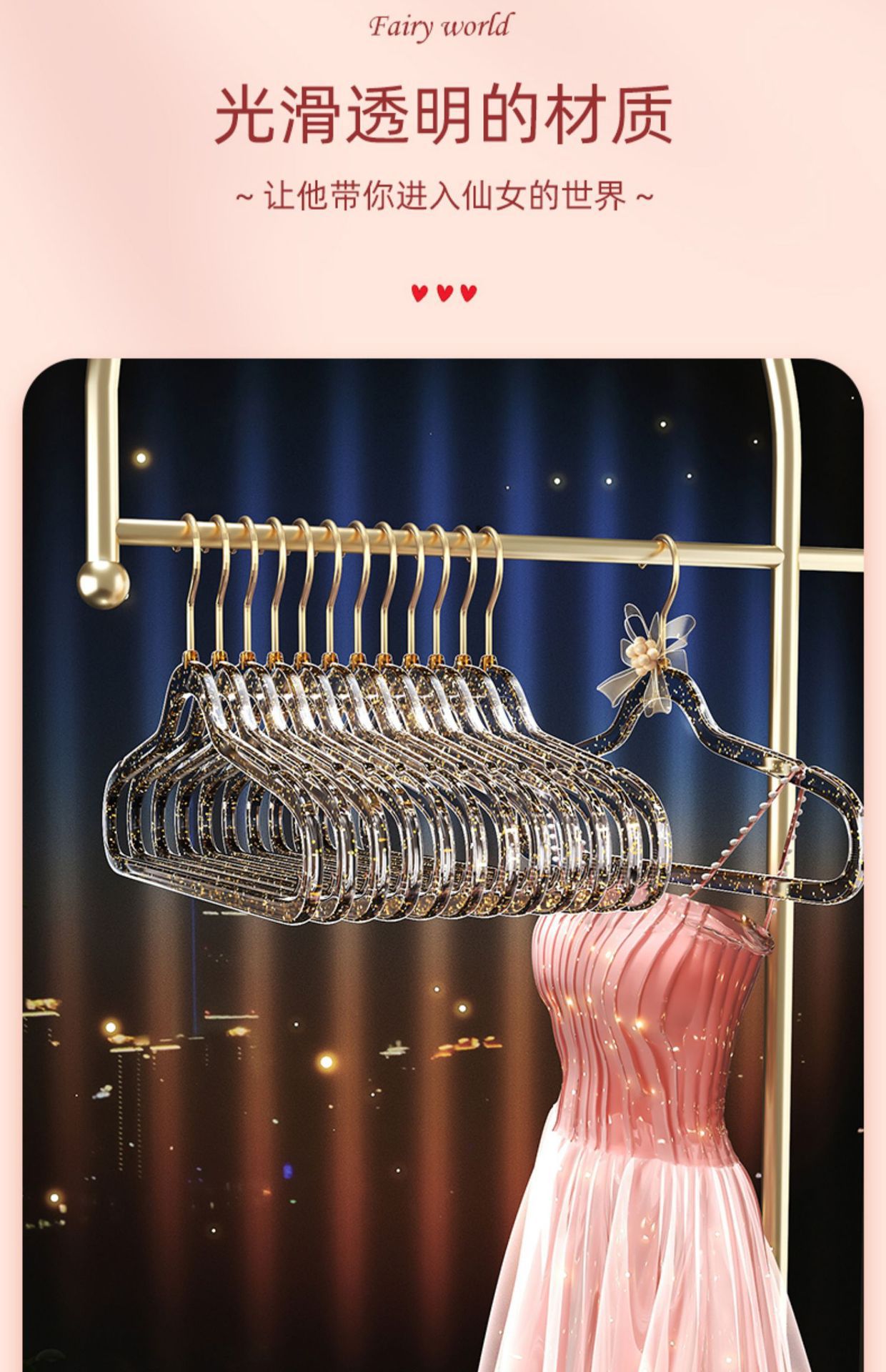 アクリルハンガー女装無痕家庭用透明プラスチック服装店かわいい水晶金粉ハンガー卸売り