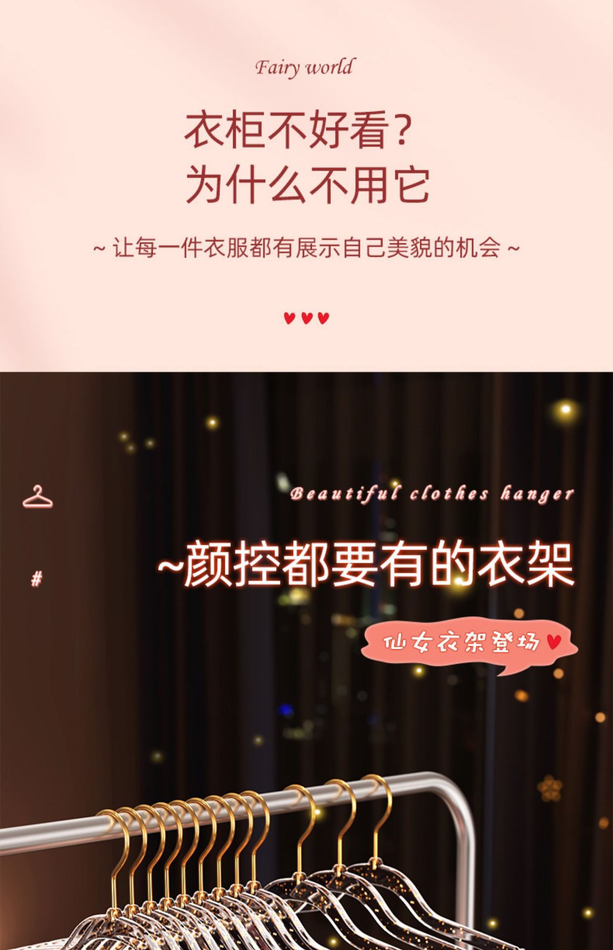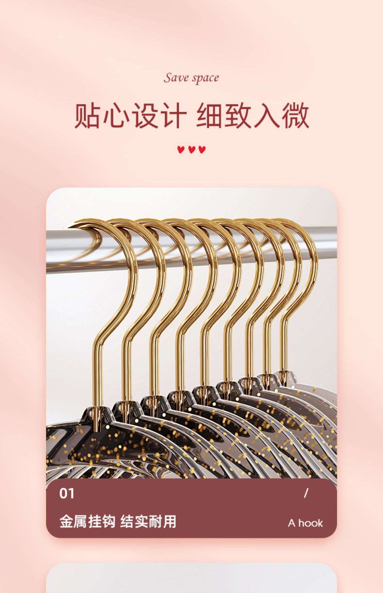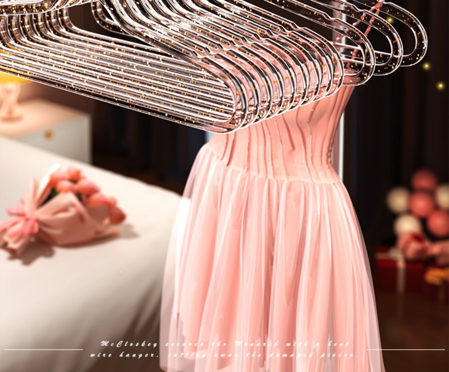 アクリルハンガー女装無痕家庭用透明プラスチック服装店かわいい水晶金粉ハンガー卸売り