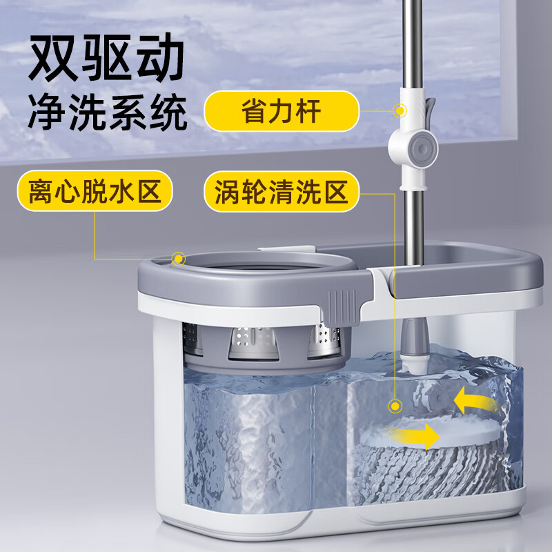 家傑優品回転モップ家庭用手洗怠け者省力モップ吸水モップモップ神器1竿2頭