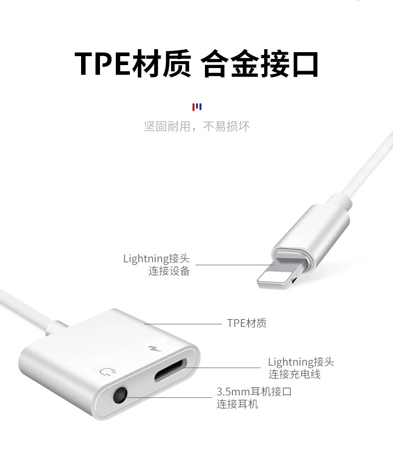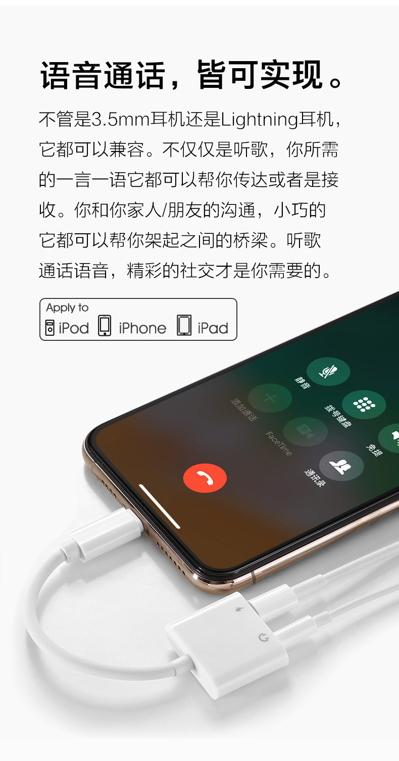 クロスボーダーのイヤホンのアダプターのotgの変換のヘッドのオーディオの変換器の3.5mmの線は金メッキのヘッドのオーディオの中継線を挿します