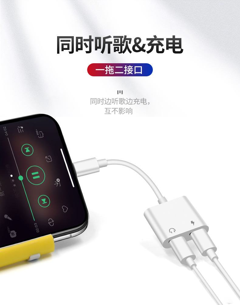 クロスボーダーオーディオケーブル充電と音楽鑑賞を同時に行うためのアダプターコンバーター、1対2の3.5mmオーディオ接続ケーブル