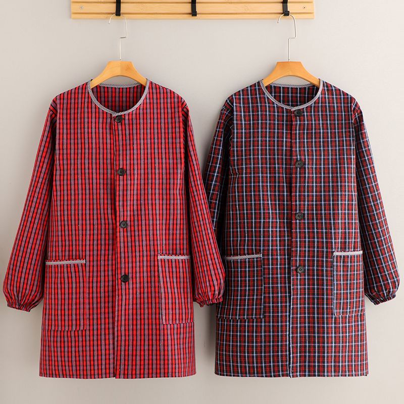 純綿の厚手の粗布カバーの女性は長袖のエプロンを着て仕事をして清潔な作業服を着ています。