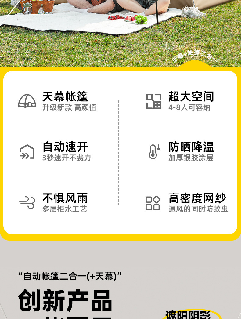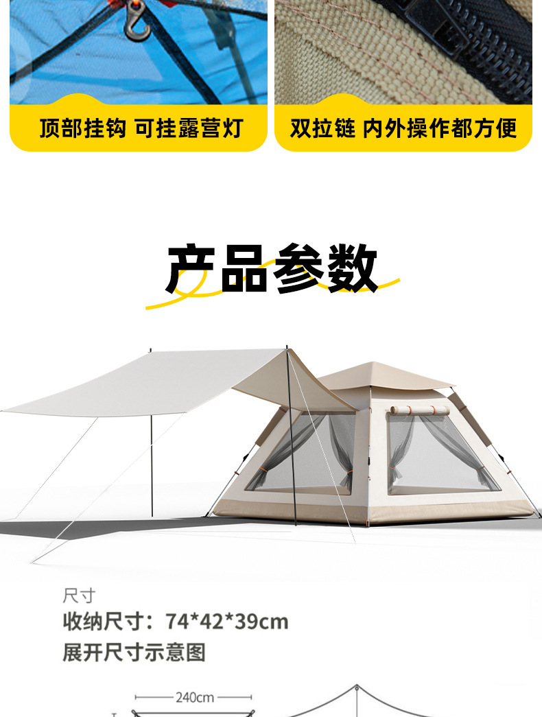 テント折りたたみ式天幕一体型自動キャンプピクニック防水屋外キャンプ用品一式日よけポータブル