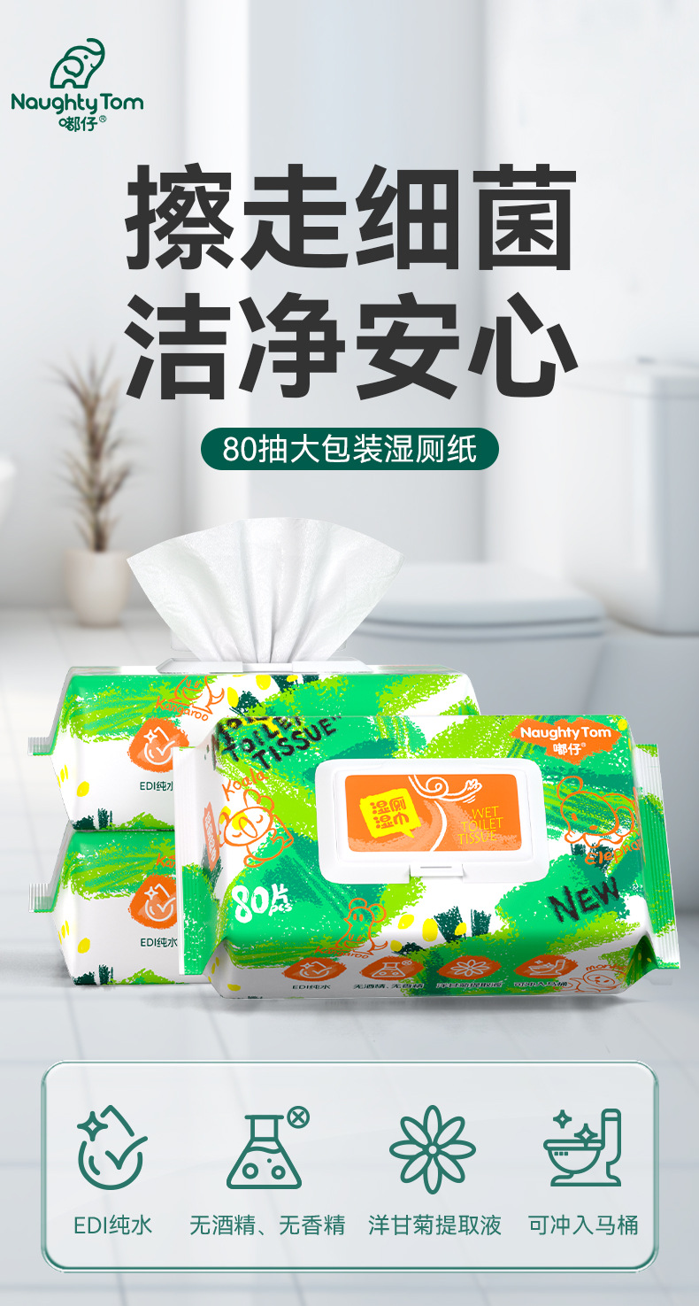 湿厕纸清洁经期用卫生湿巾女生冲马桶批发抑菌纯水湿厕巾家用清爽