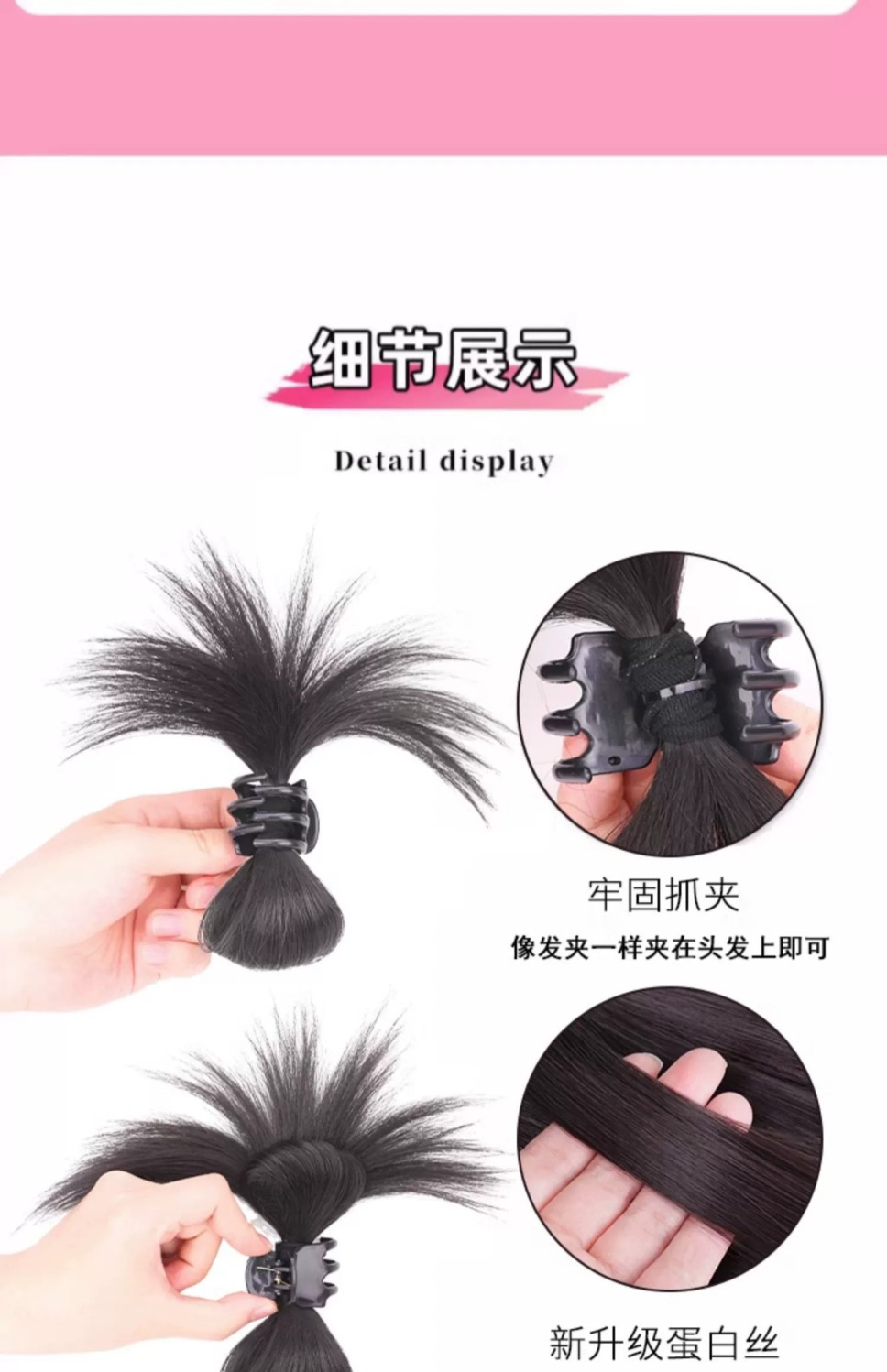 ボールヘッドウィッグ、グリップクリップ、千金の花のつぼみヘア、テクスチャードツイストヘアバッグ、後頭部ウィッグ、ボールヘッド