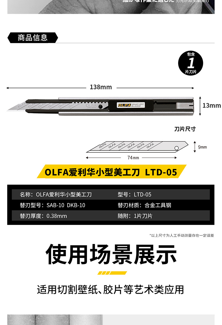 日本輸入olfa美工刀小LTD-05愛利華9mm壁紙自動車フィルムステンレス製カッティングナイフ