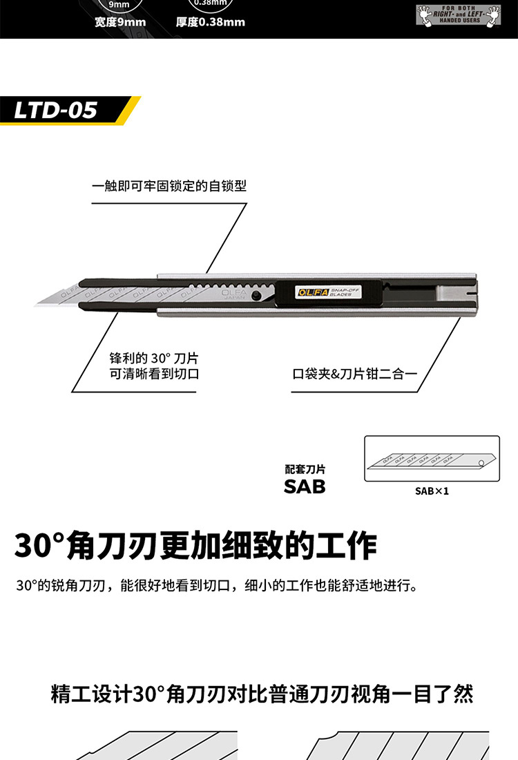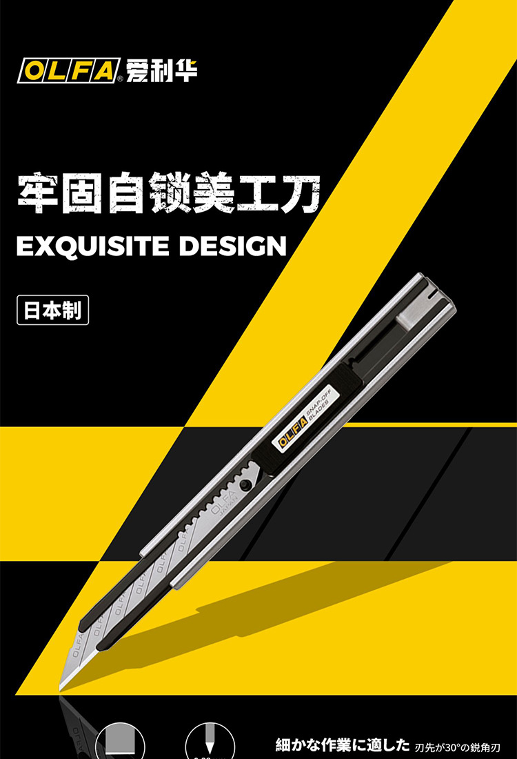 日本OLFA爱利华小号美工刀多功能9mm切割刀金属30度角裁剪刀SAC-1