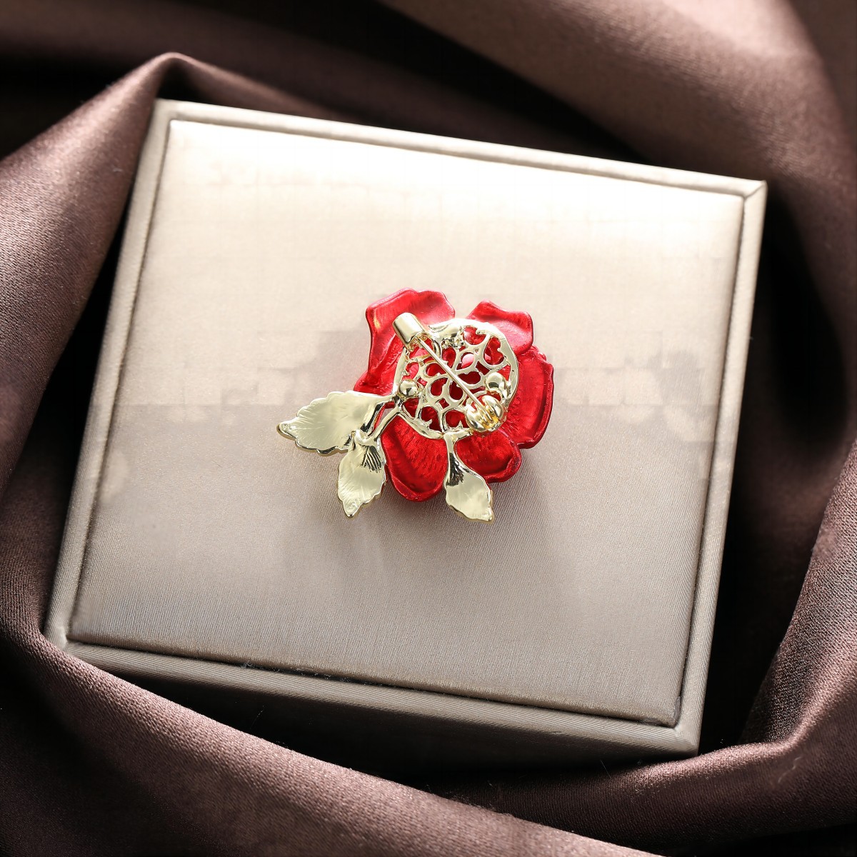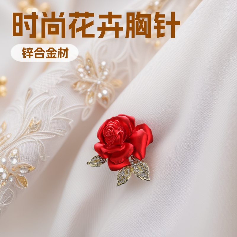 本命年中国の赤いバラの花のブローチの気質の高級な女性の高級感の胸の花の新型の精巧なピンの装飾