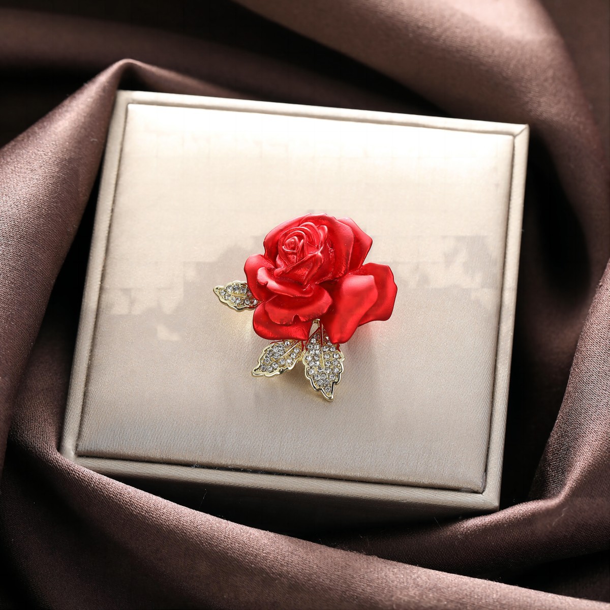 赤いバラのブローチの高級な女性は贅沢で高級感があります。