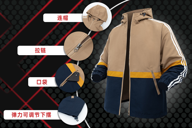 メンズスポーツカジュアルジャケット半開胸フード付き防風登山服都市アウトドア機能風ジャケット春秋