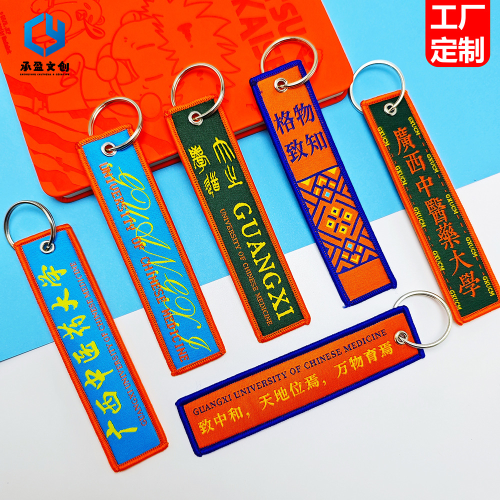 创意文字织唛钥匙扣 服装箱包LOGO双面刺绣饰品挂件手工独特