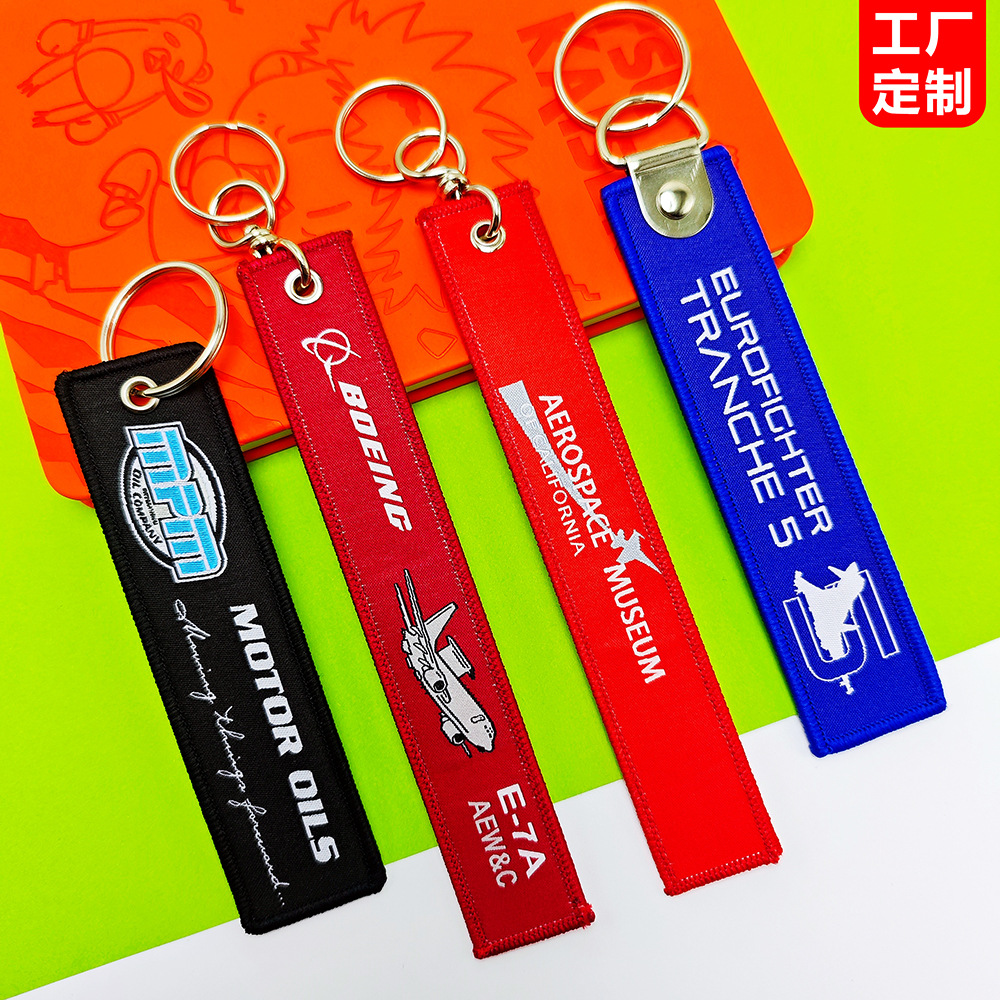 创意刺绣logo钥匙扣双面织唛绣花飞行牌航空行李牌背包挂件钥匙扣