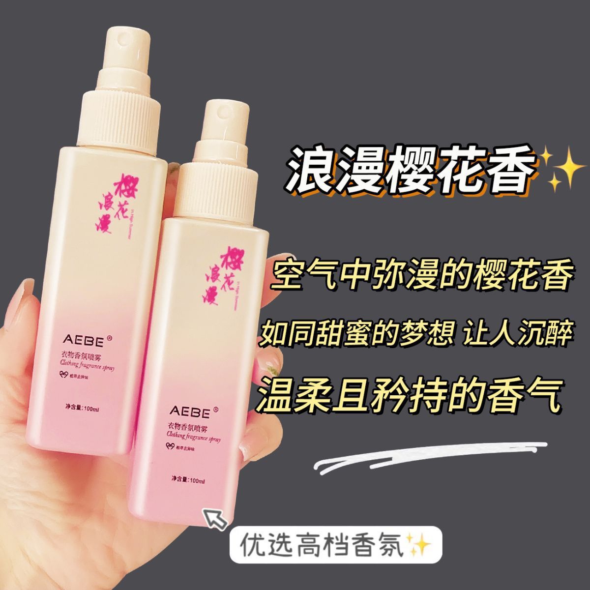 AEBE栀子花樱花衣物香氛喷雾持久留香大容量香水清新自然带体香女
