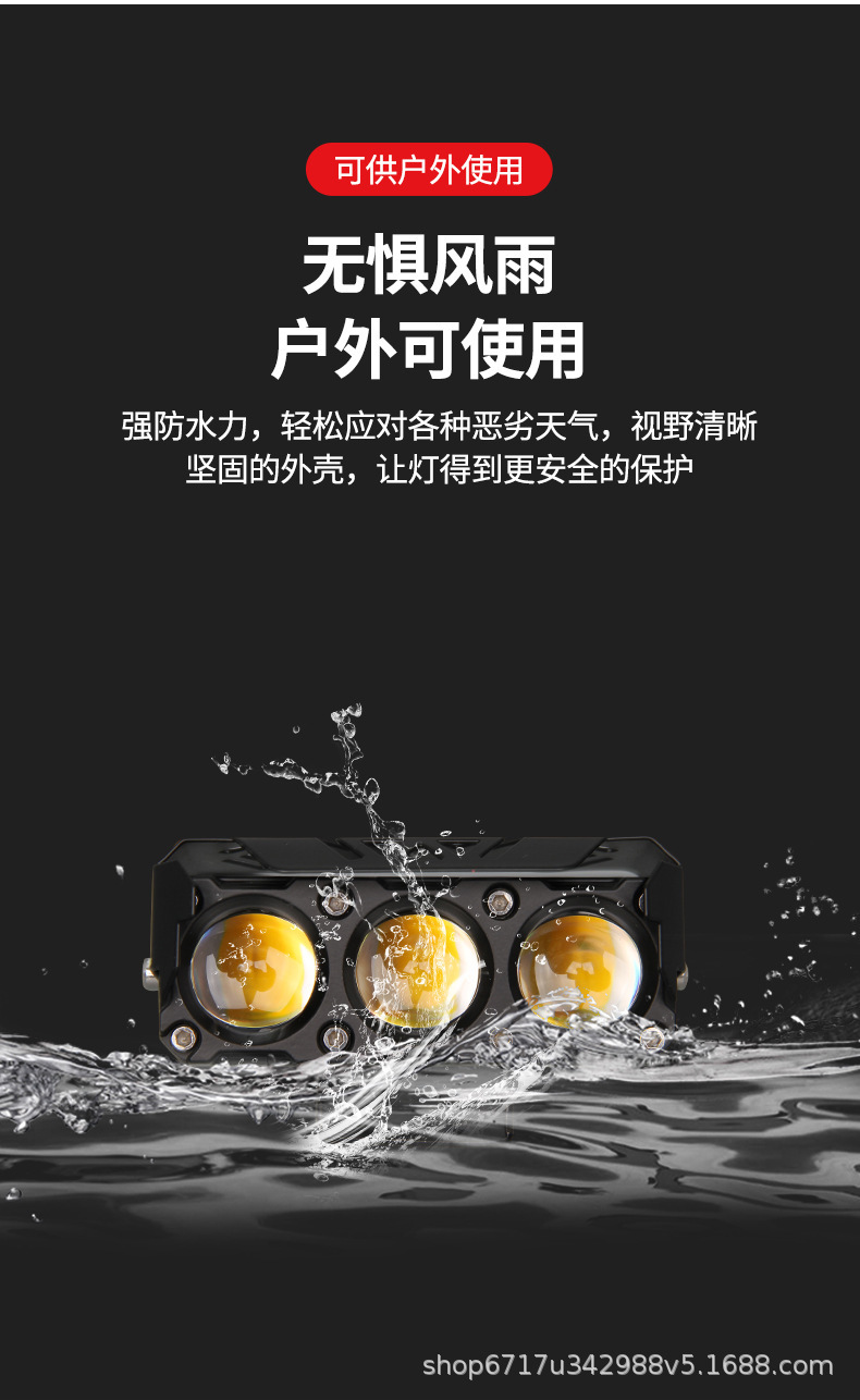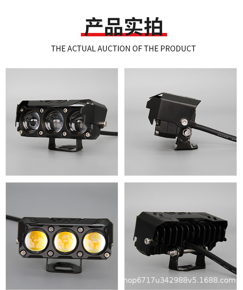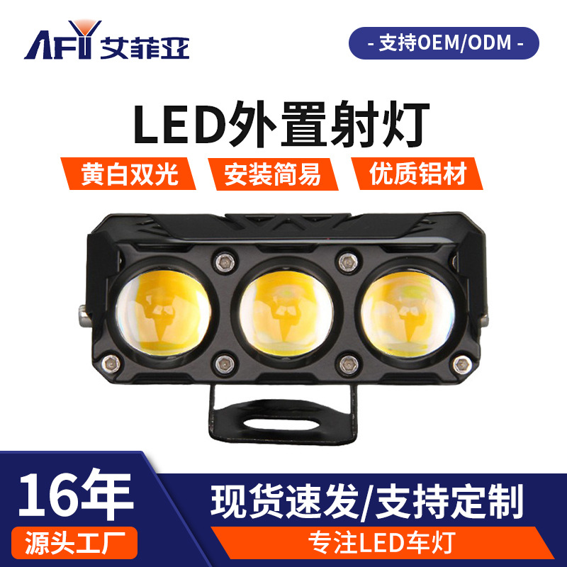 跨境三眼四眼摩托车射灯白黄双色led铺路灯户外防水改装前置大灯