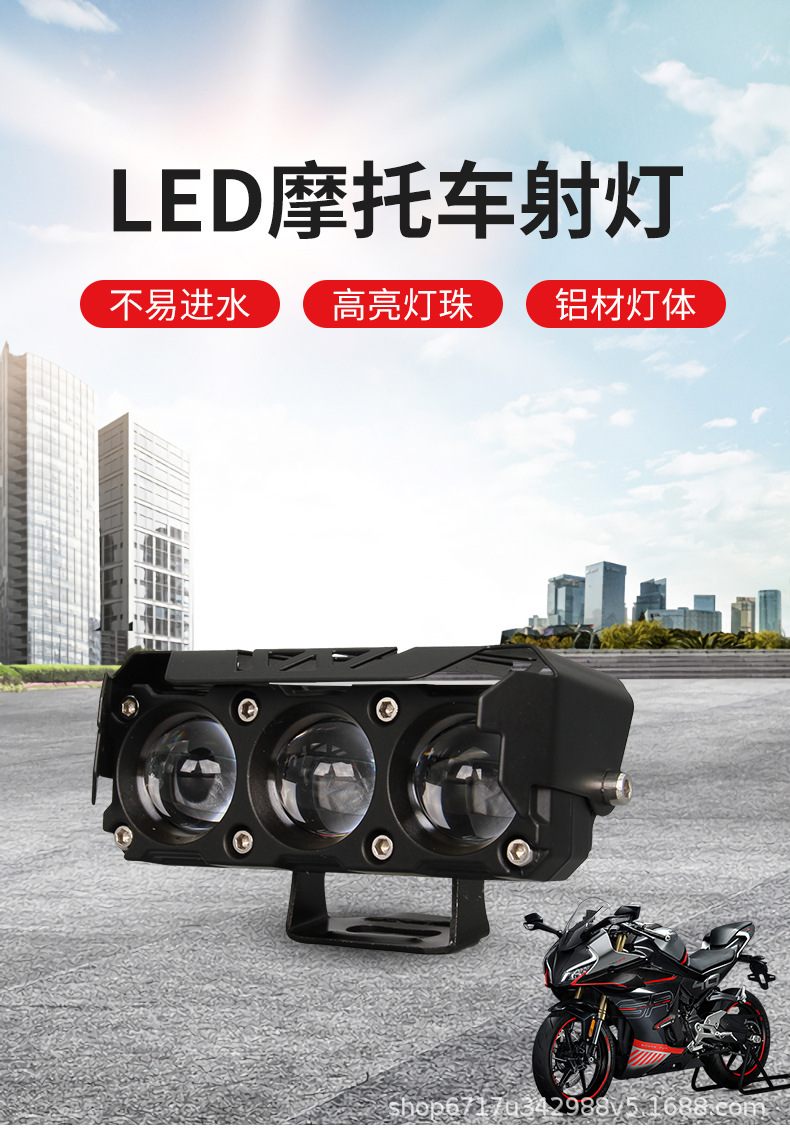 オートバイスポットライト2色ledヘッドライト3眼スポットライト遠近光防水電動オートバイ前照灯改造