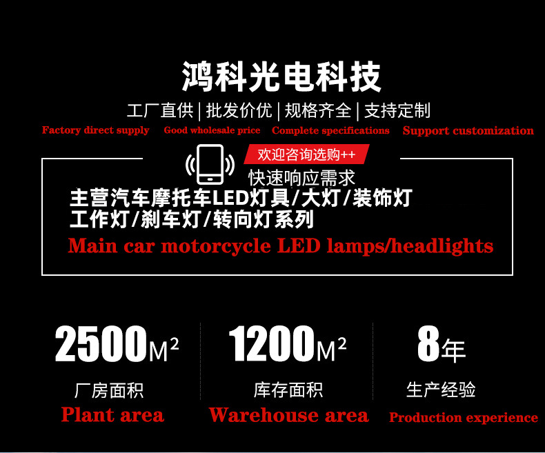 电动车射灯强光带透镜摩托车改装三眼四眼远近光铺路超亮聚光LED