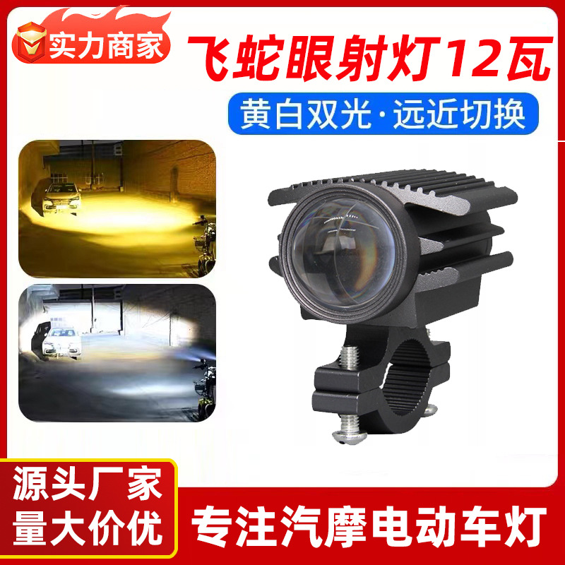 電動バイク用射灯、黄白2色、遠近光LED、高輝度フロントライト、2色外付け改造ヘッドライト