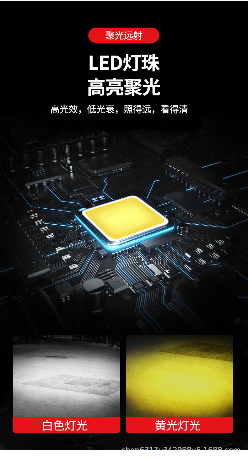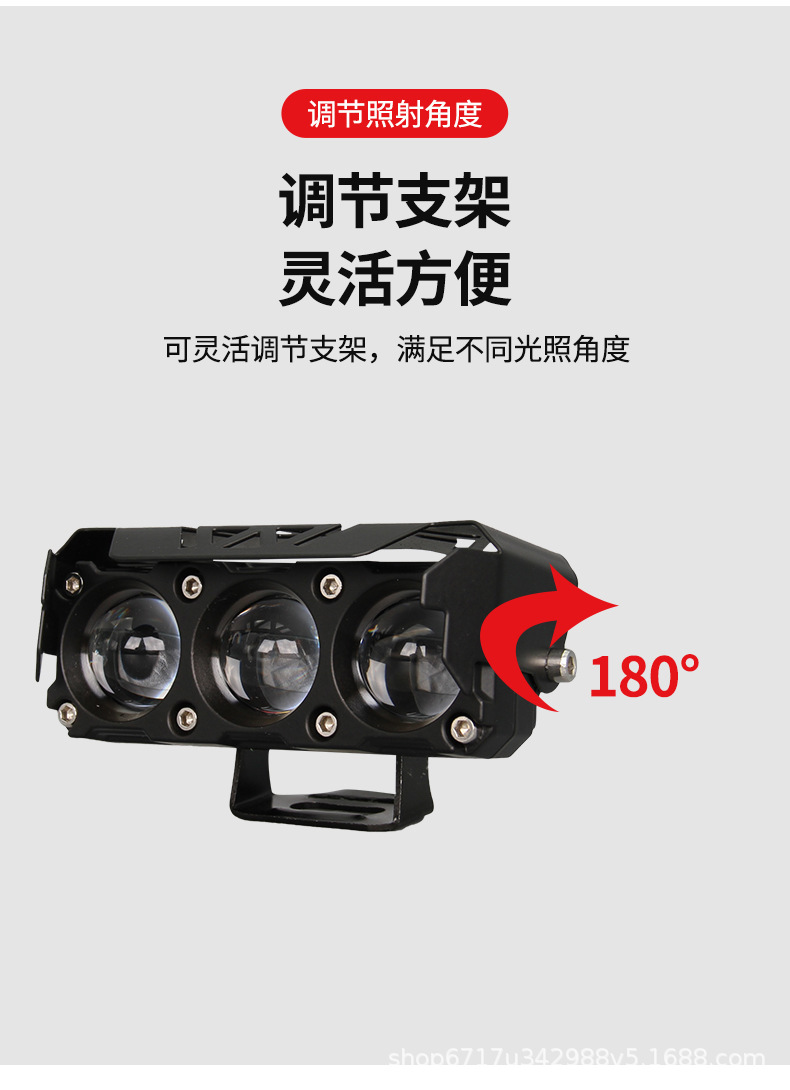 摩托车射灯三角铺路灯强光款黄白双色改装车灯LED爆闪工作灯超亮