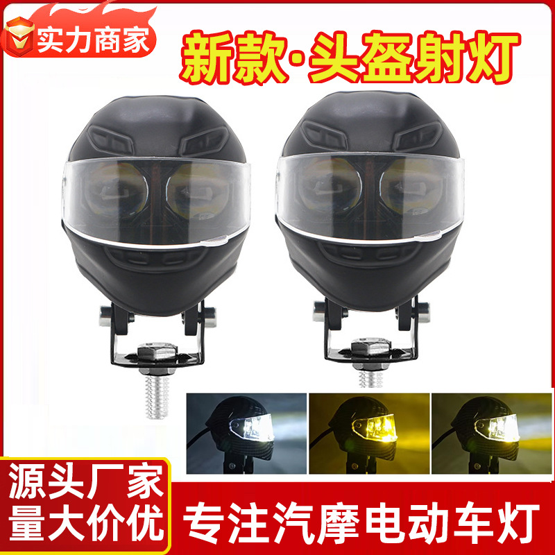 摩托车射灯头盔双眼LED大灯防水双色强光远近光一体夜骑电摩超亮