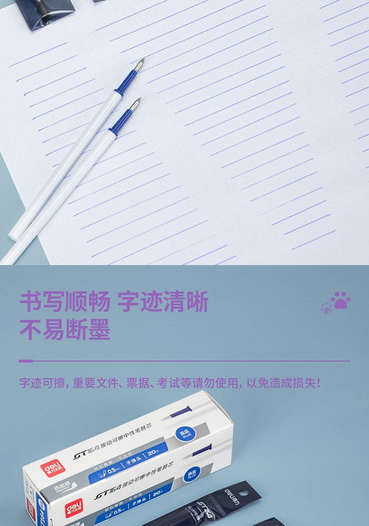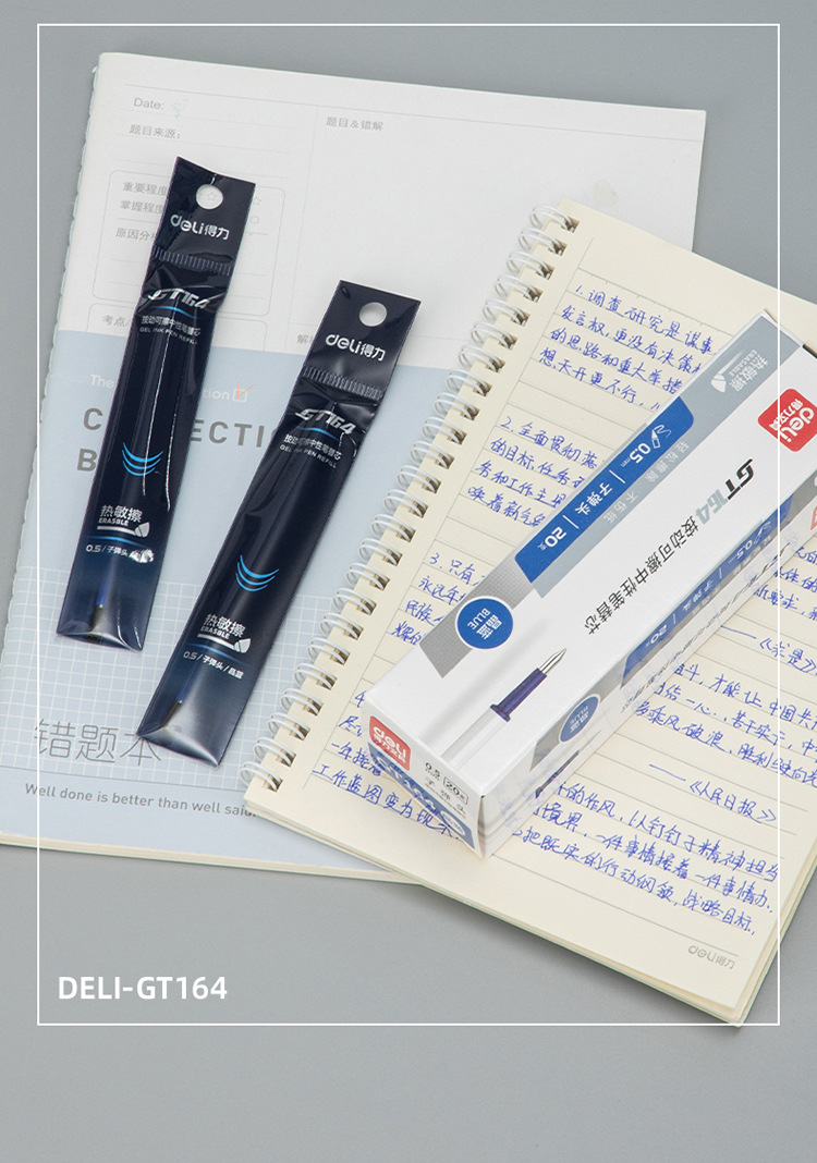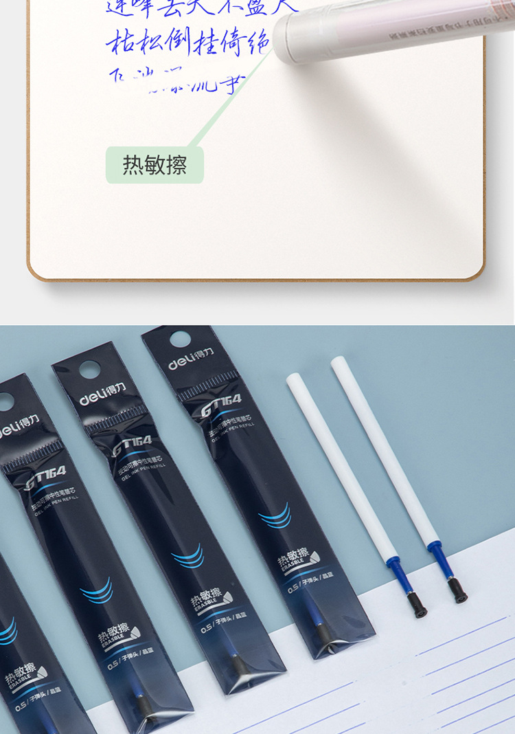 得力GT164可擦中性笔芯热可擦笔替换芯0.5mm子弹头按动可擦笔芯