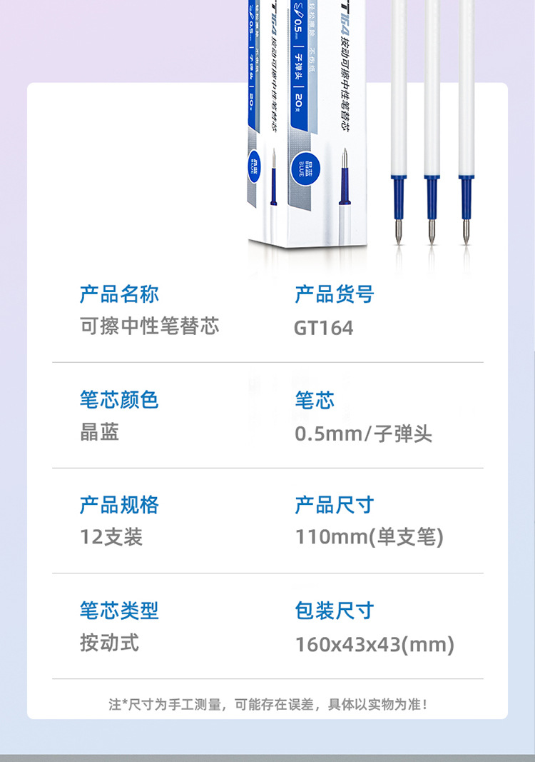 力があります。弾頭の芯を拭くことができます。学生は三年生の結晶藍黒0.5熱で中性の芯を拭くことができます。gt164