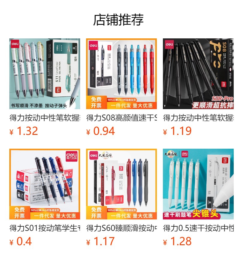 有力中性ペン黒0.5mm水筆学生水性速乾ペン芯赤ペン黒ペンサインペン6600es