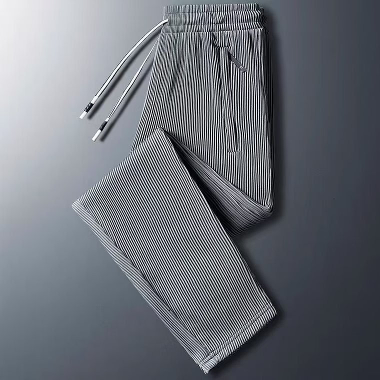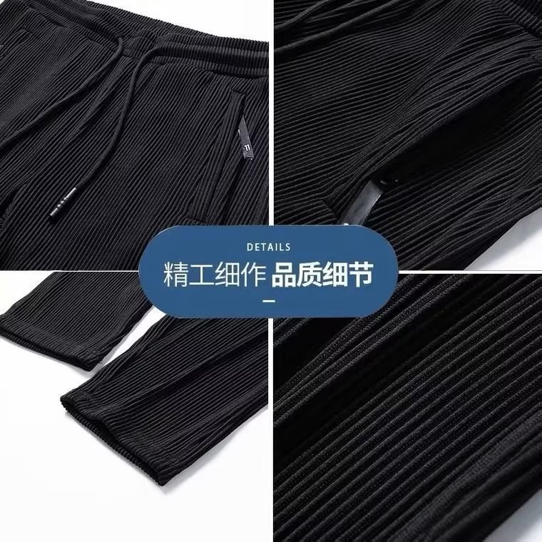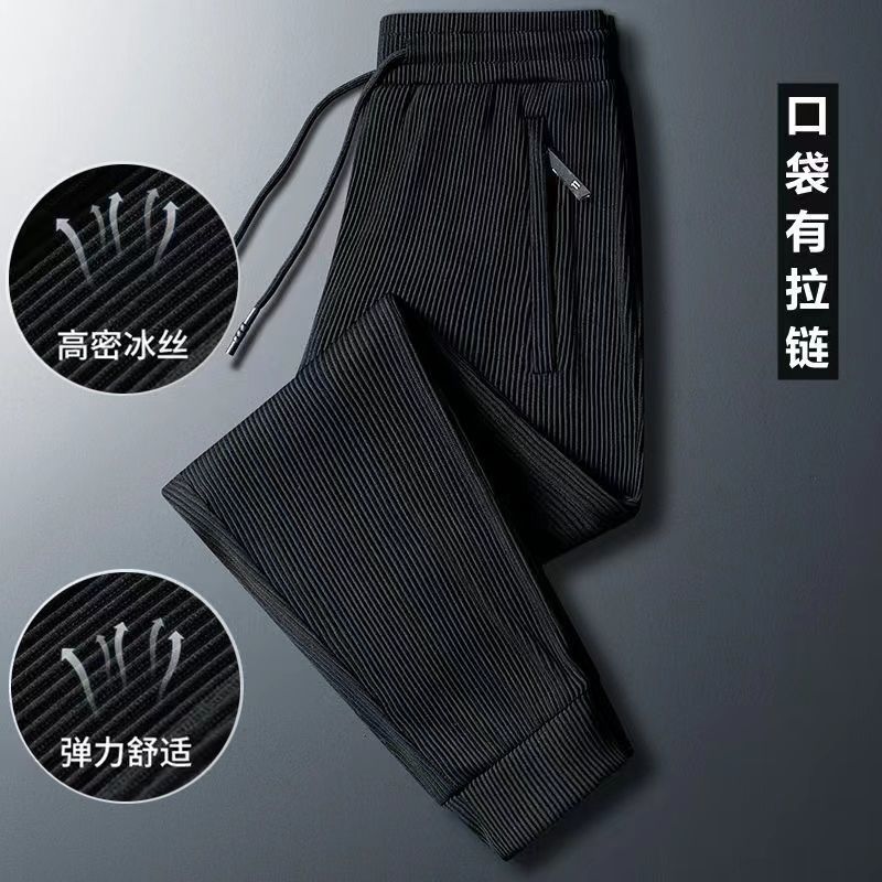 ゆったり薄手メンズカジュアルショーツ韓国風トレンディポケットジッパーミッドパンツウエストゴムアイスシルクパンツメンズ夏服