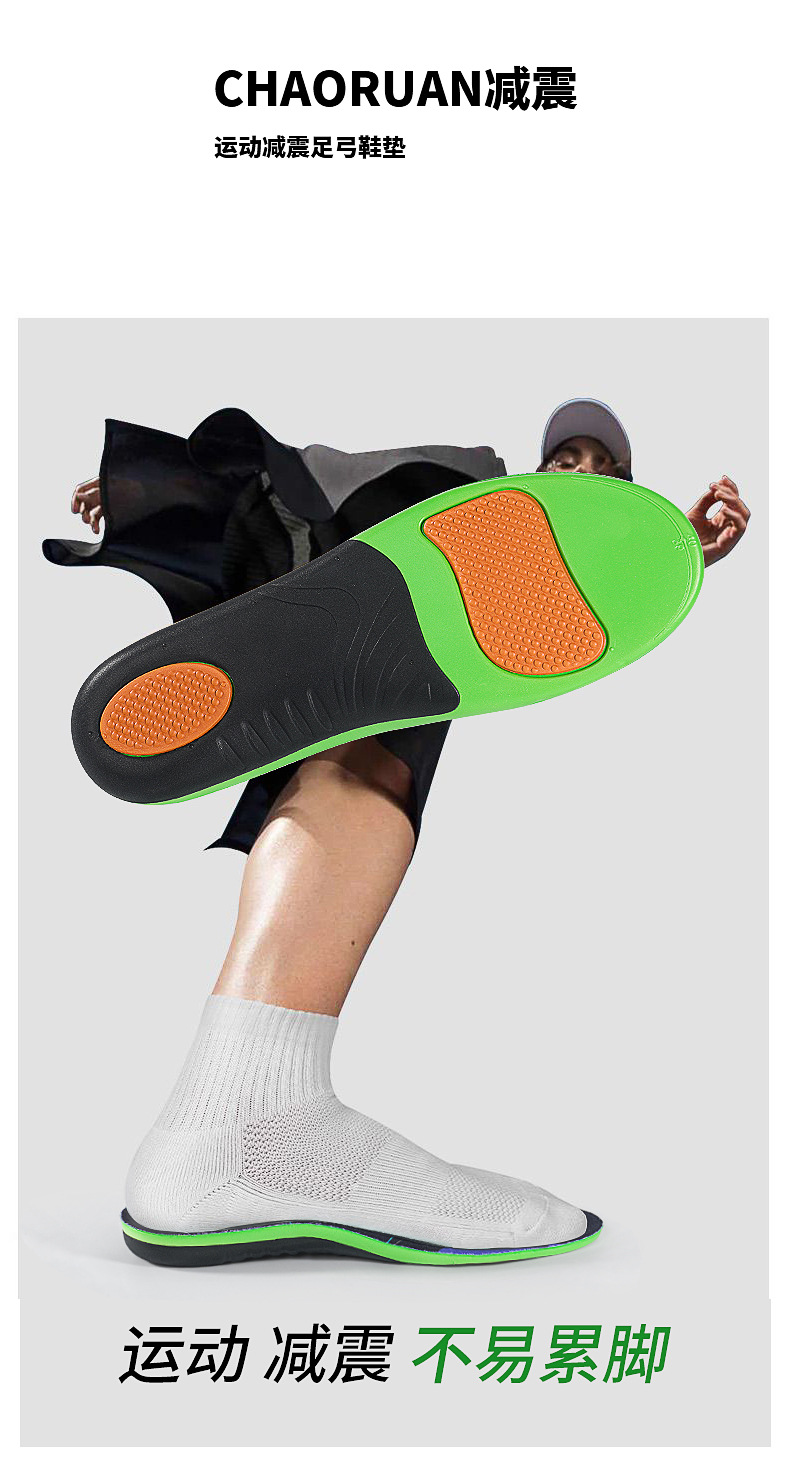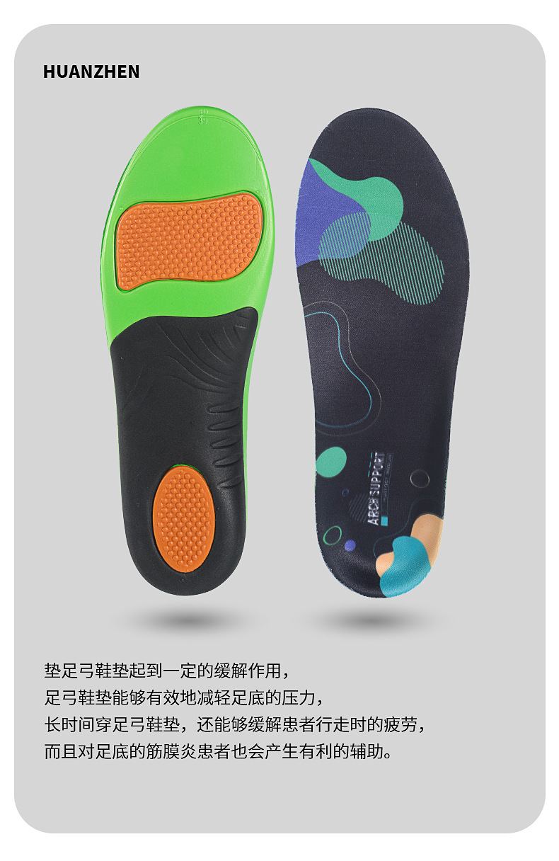 アーチインソール PU スポーツインソール偏平足ハイアーチサポートクロスボーダー売れ筋爆発モデル男性と女性の衝撃吸収インソール