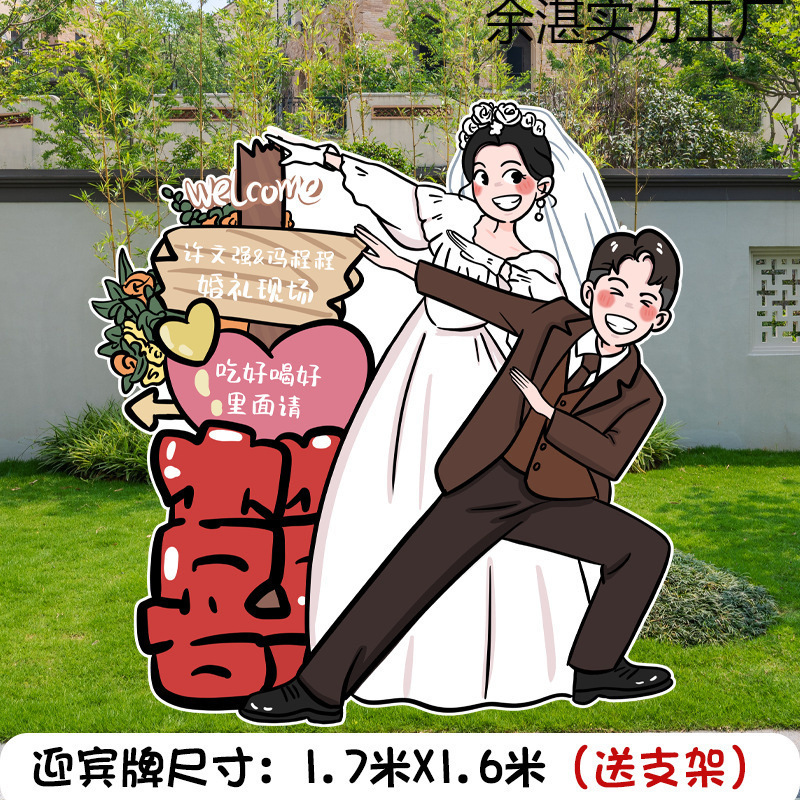 卡通婚礼迎宾牌订婚宴板结婚门口人形立牌定/制出阁宴回门宴古