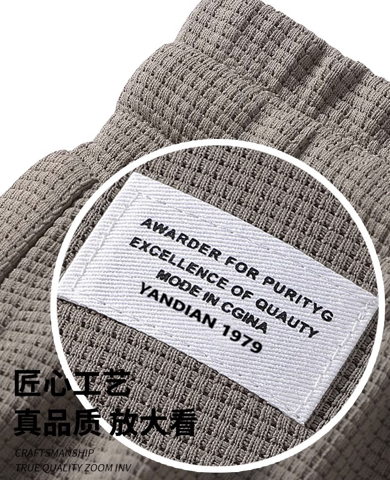 ワッフルパンツ男性夏はカジュアルなストレートパンツを着ています。