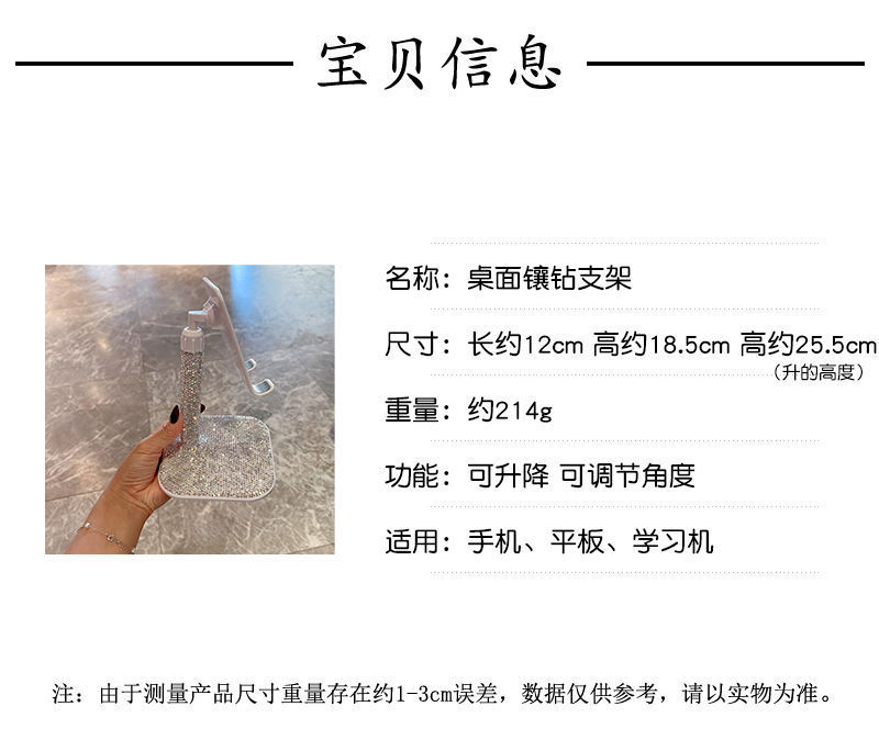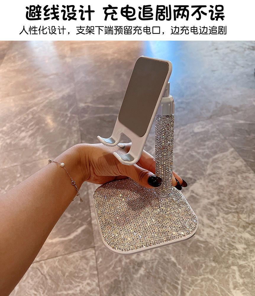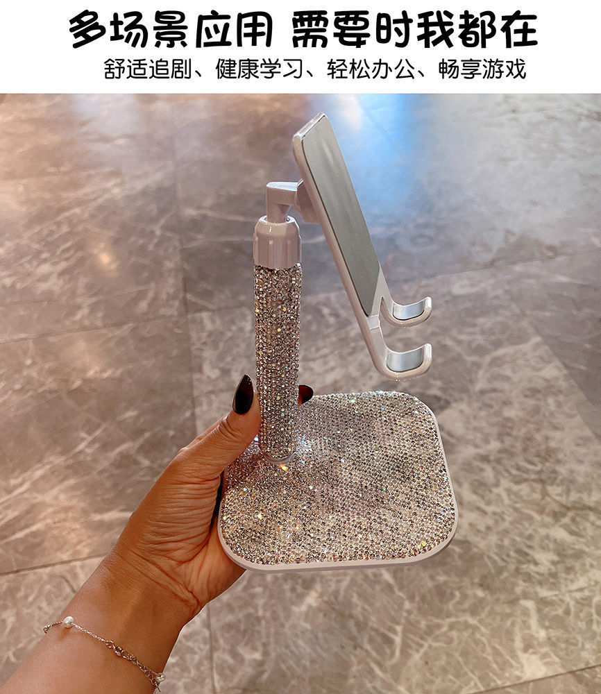 デスクトップ汎用ポータブル角度調整昇降式スマホスタンド 高級ダイヤモンド装飾 ドラマ鑑賞に最適 海外で人気の工場直販