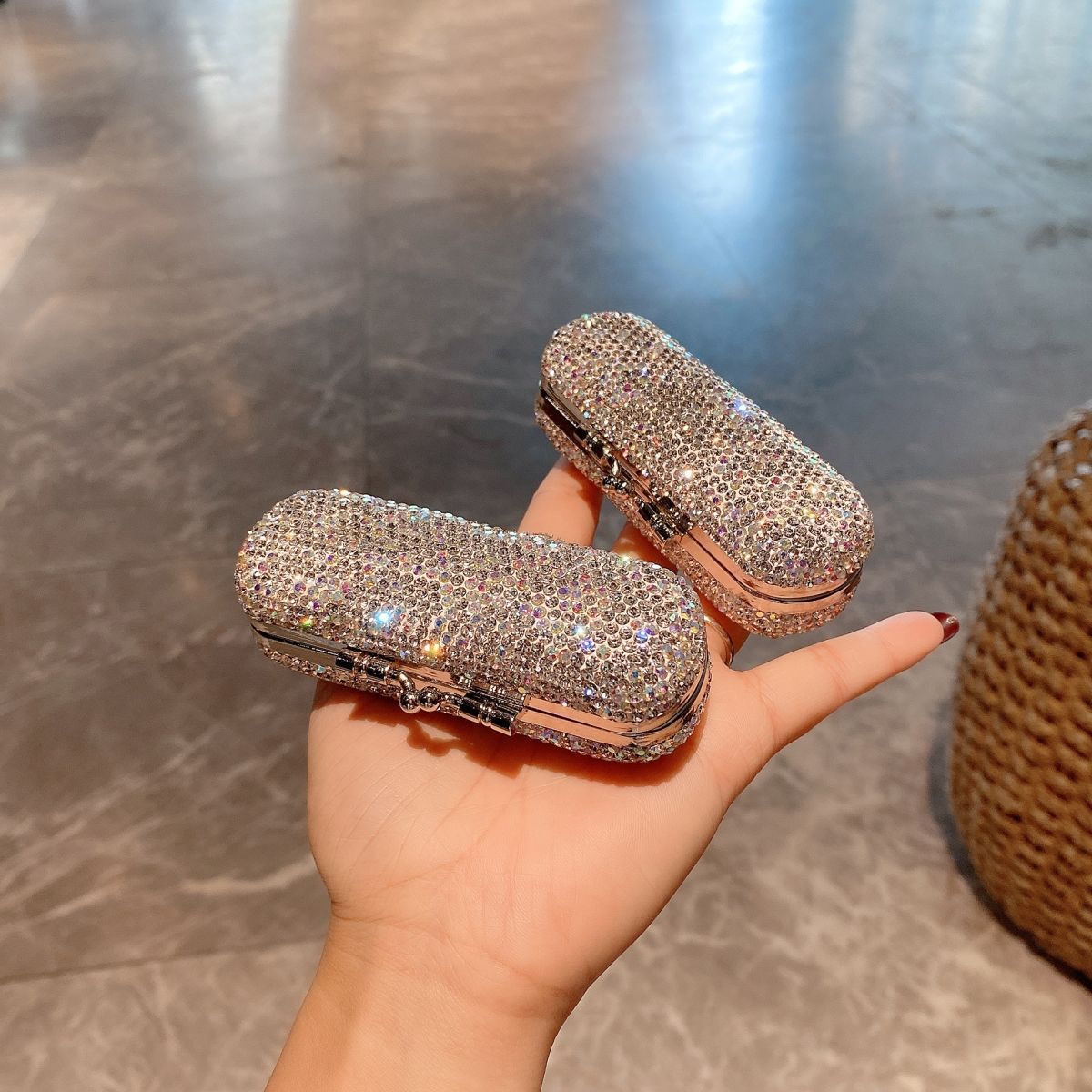 ポータブルミニピルボックス、高級ラグジュアリーラインストーン正方形ピルボックス、絶妙なピル包装、越境人気商品、工場直販