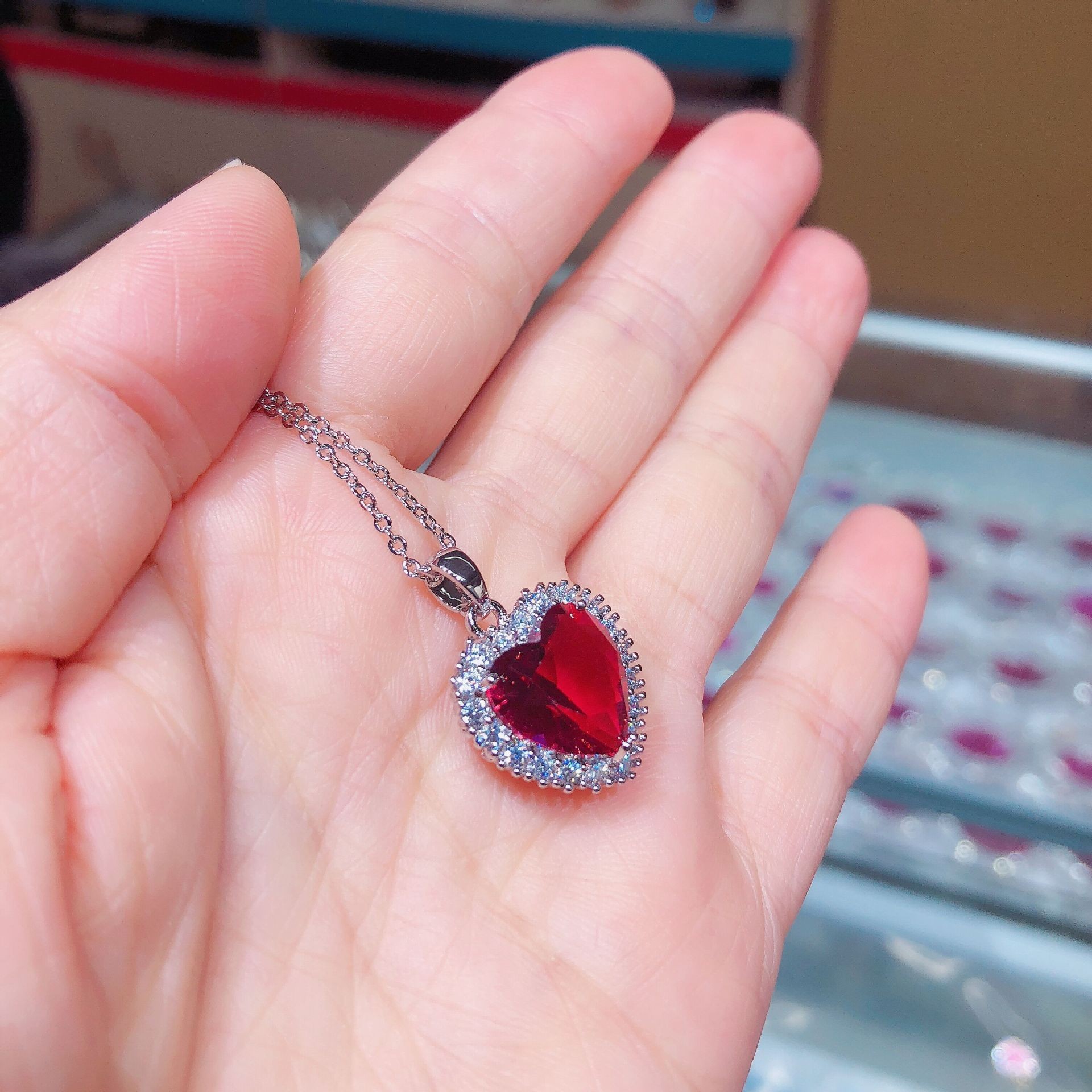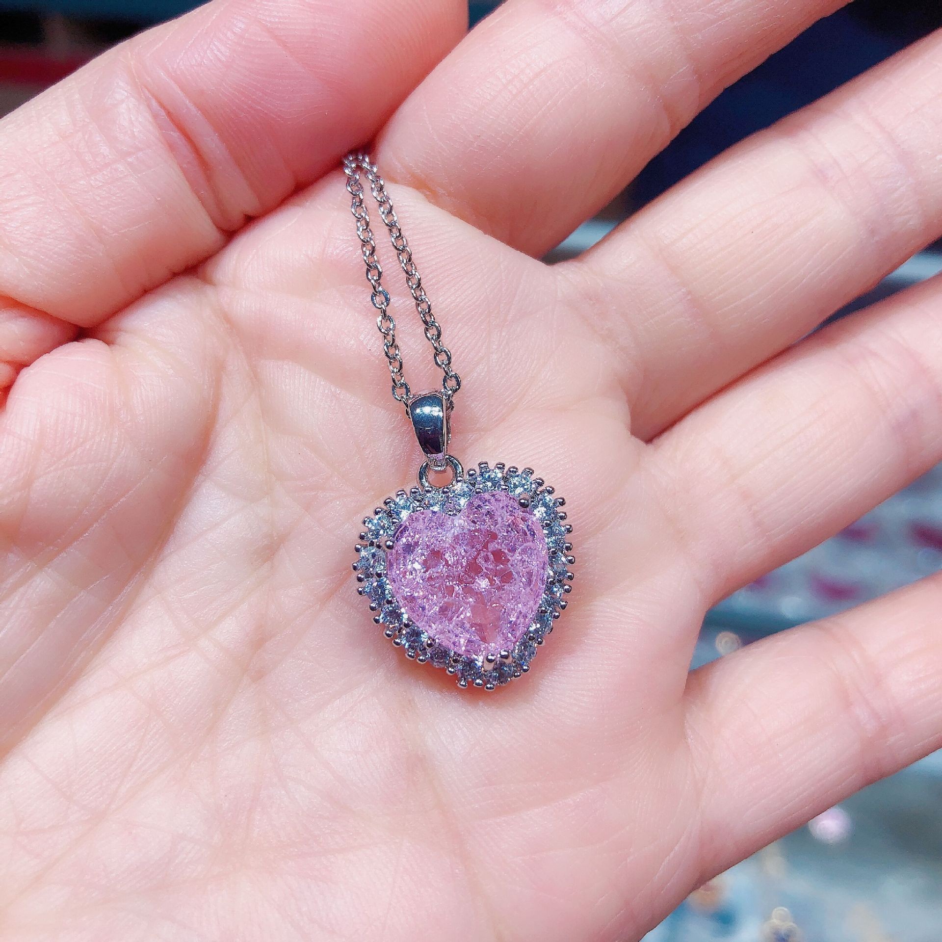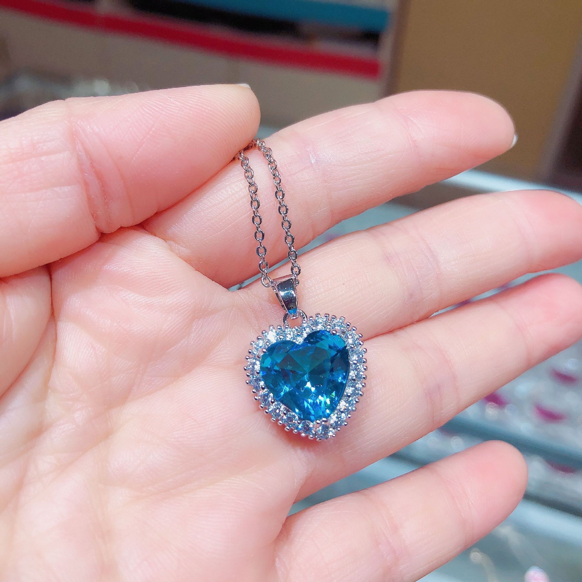 オーシャンハート銅象嵌ジルコンクリスタル象嵌ハート型ペンダントネックレス工場直販ラブネックレスプリンセススタイル