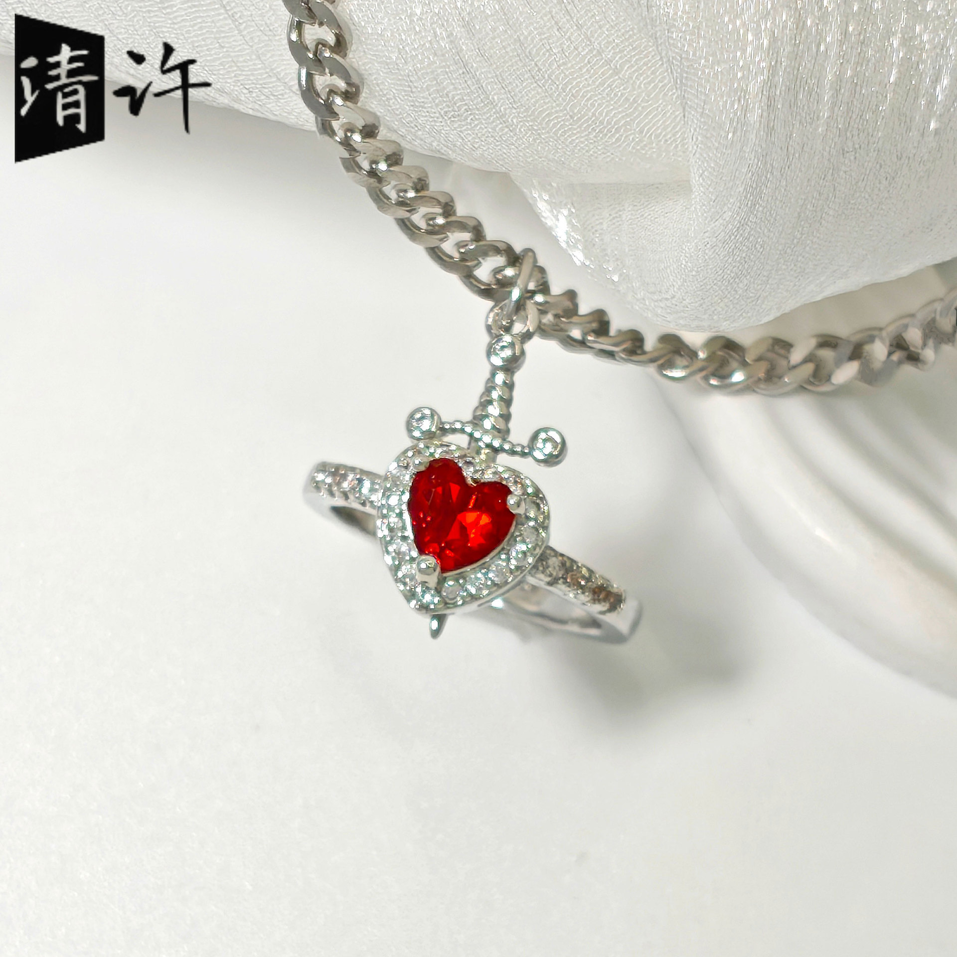 源头工厂跨境爆款一剑穿心戒指手链情侣饰品铜精致高级感手饰配饰