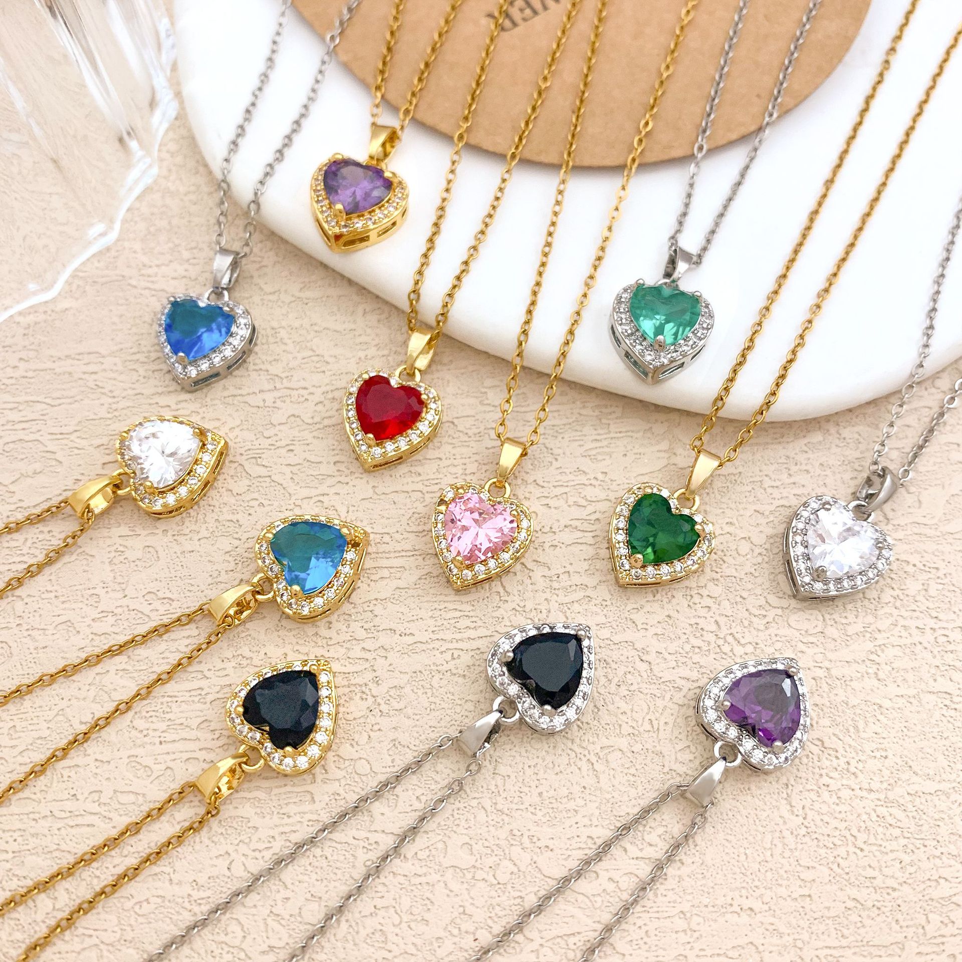 项链韩版彩色爱心锆石项链配饰女日韩热卖轻奢气质小众锁骨链配饰