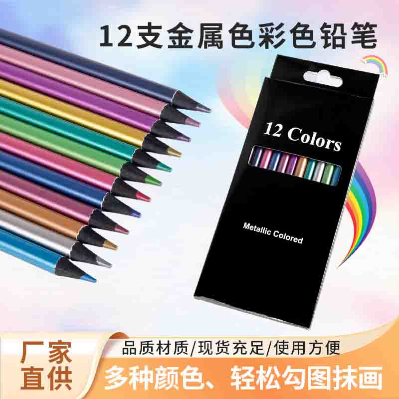12 色のメタリック色鉛筆黒木メタルカラー鉛ハンドブック落書き絵画クリエイティブ DIY 子供のアートペン
