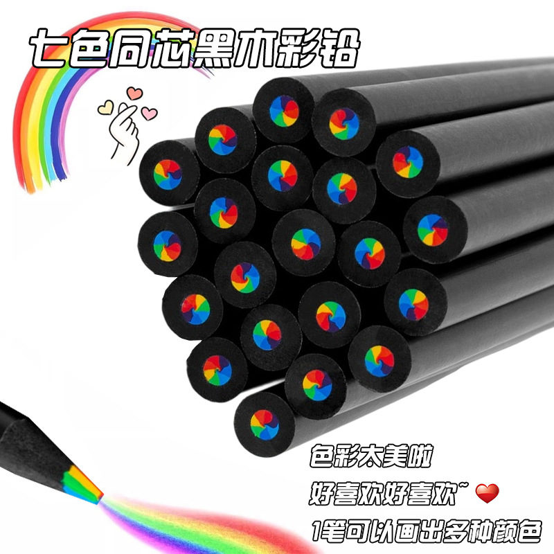 メーカー卸売り黒木鉛筆七色同芯七彩鉛筆児童絵画虹鉛筆創意手描き色鉛筆