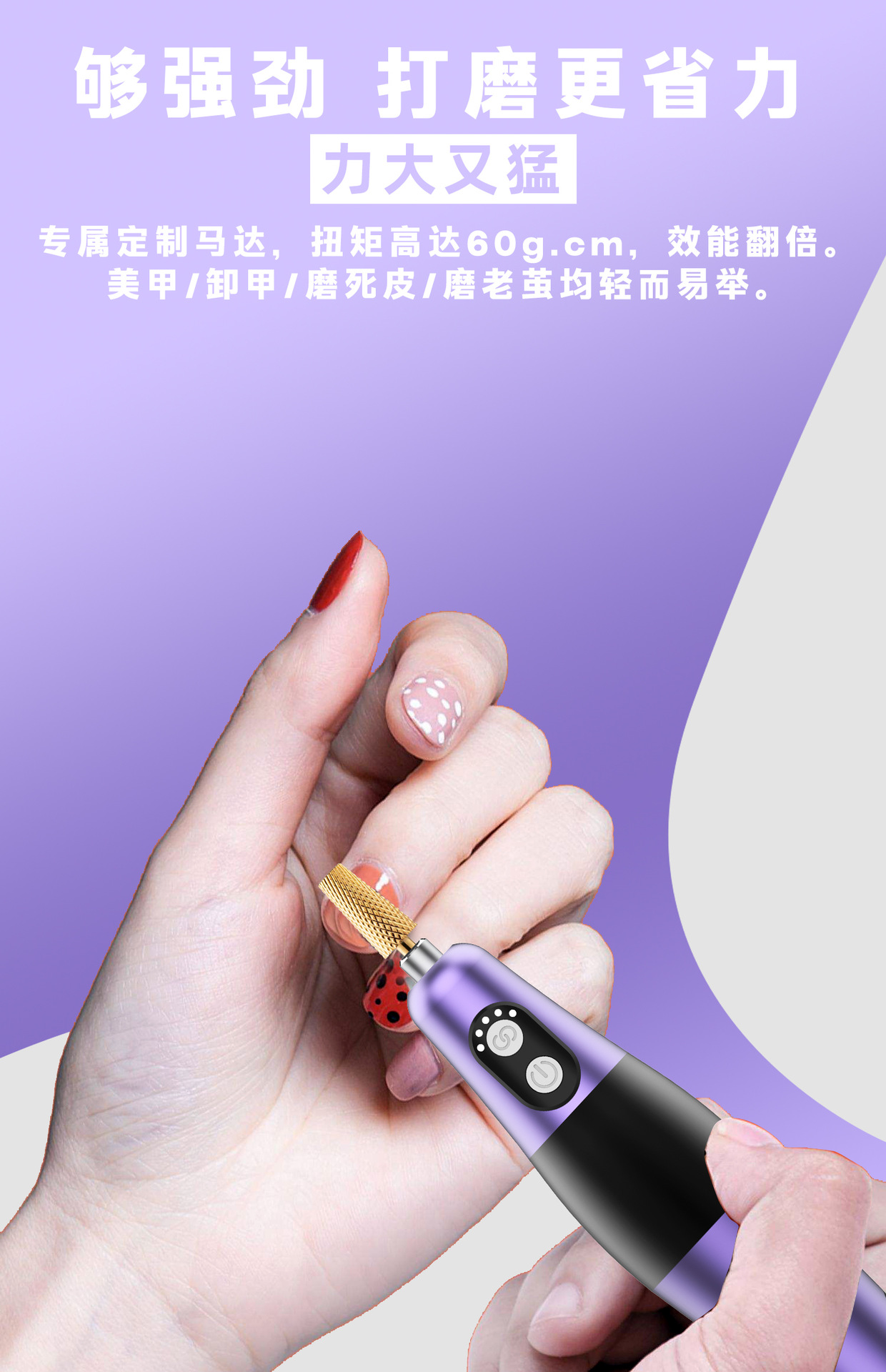 ネイルポリッシャー充電式ポリッシャーネイルサロン専用ポリッシャーブラシレスプロフェッショナルマニキュアリムーバー熱くない