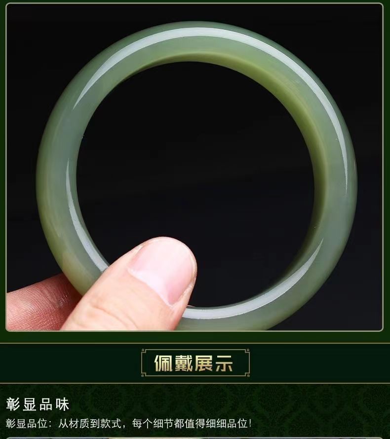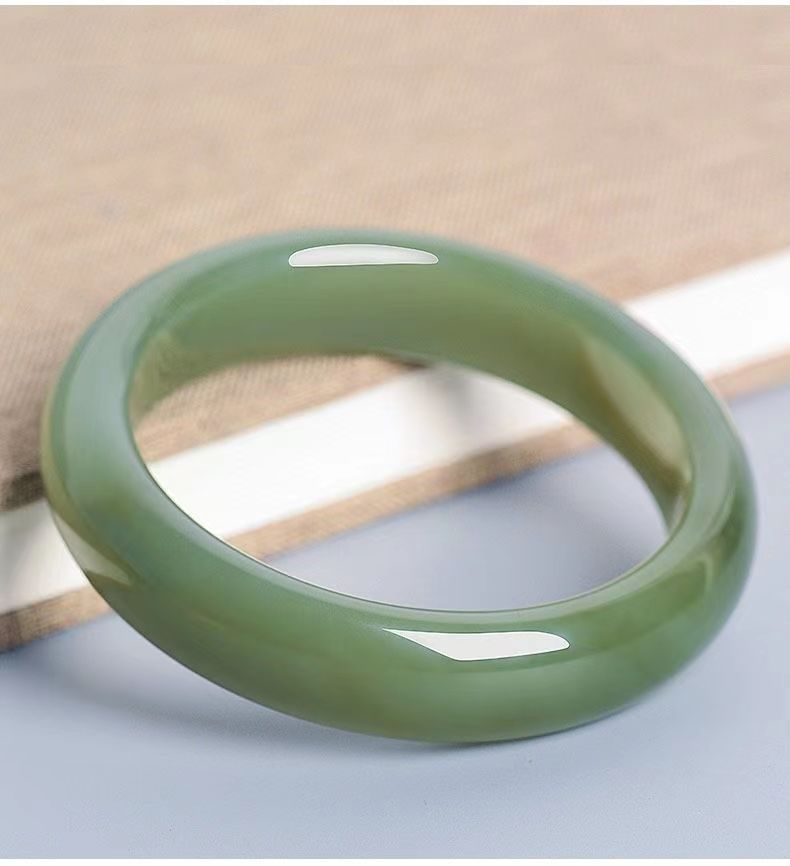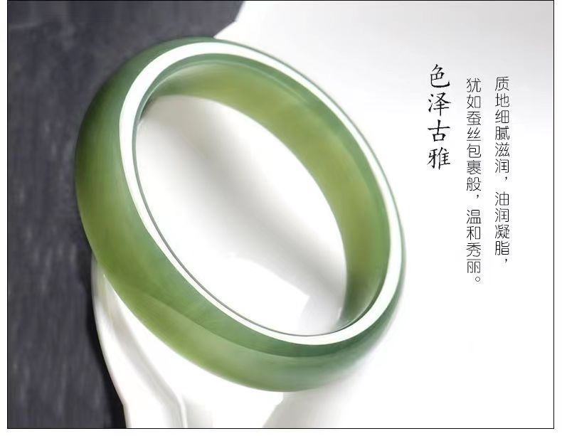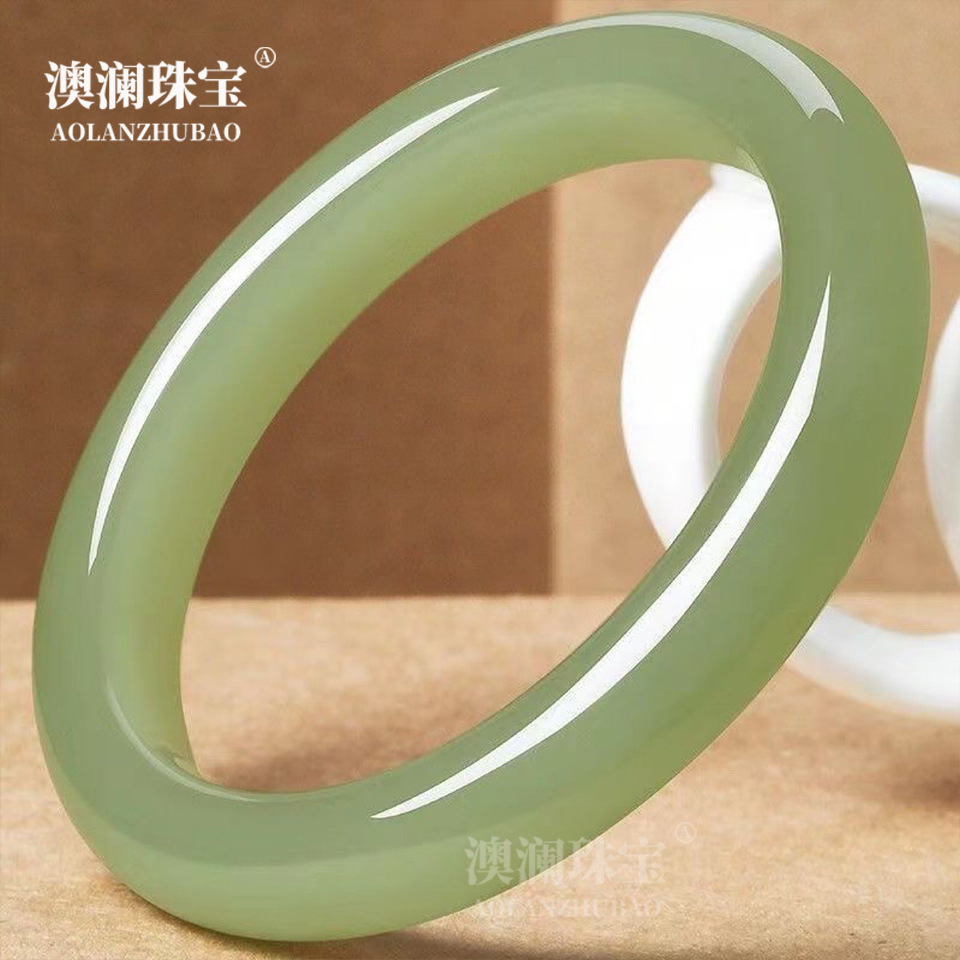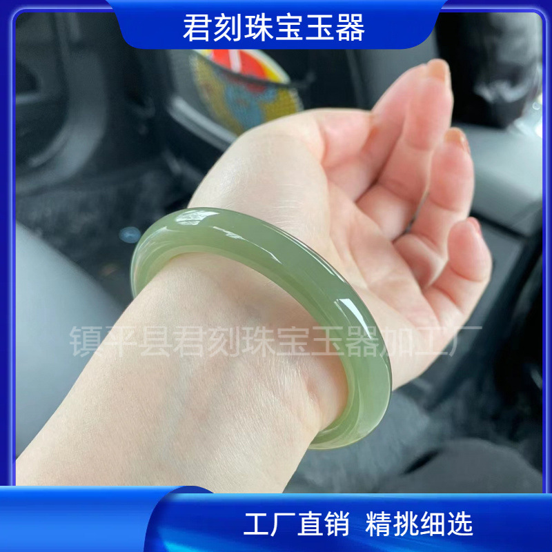 新品厂家批发外蒙料新疆青白玉手镯女款宽胎圆条款仿和田玉晴水镯
