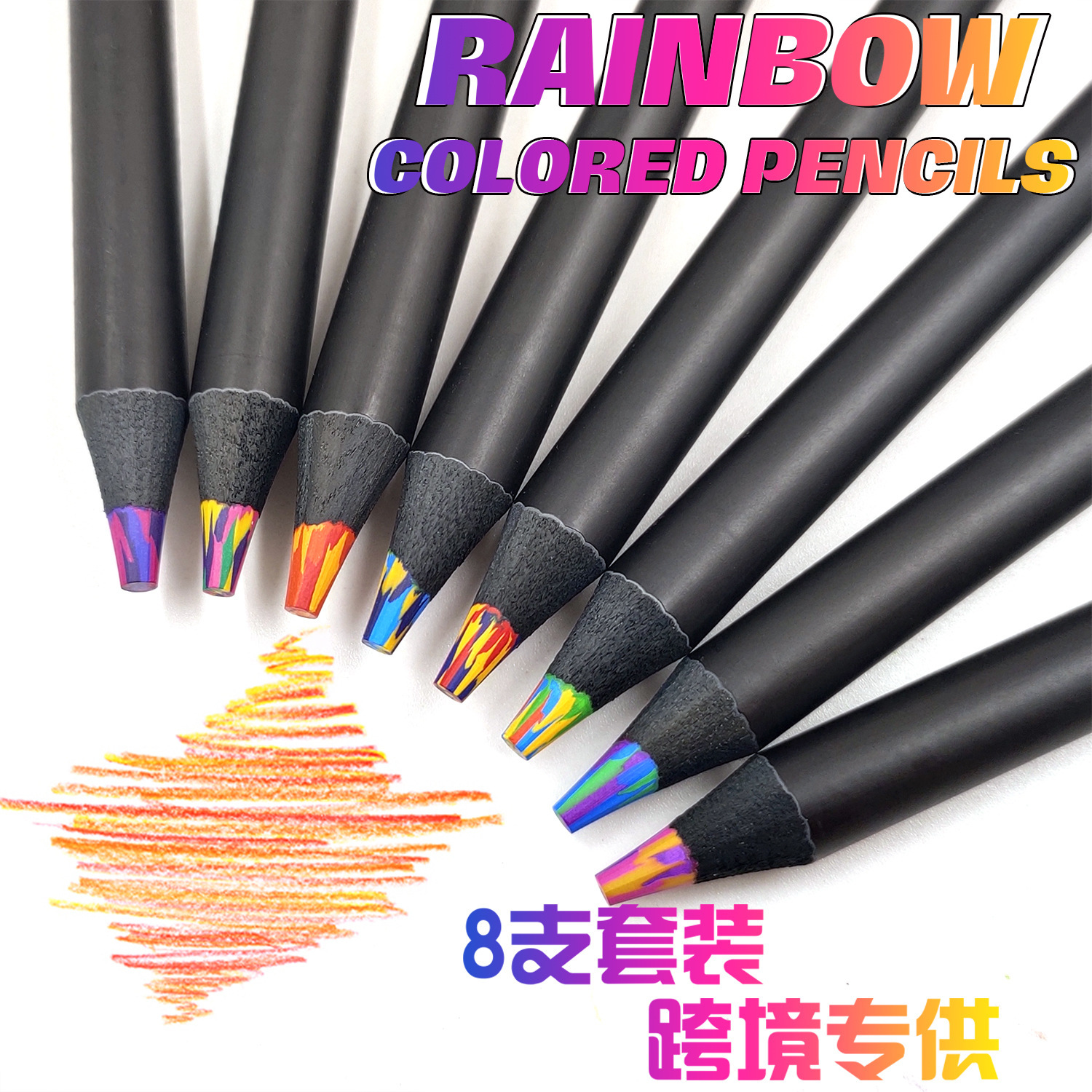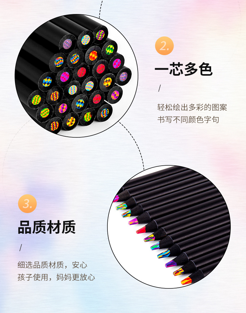 跨境黑木彩虹笔7色同芯彩色铅笔渐变创意儿童礼品涂鸦彩铅笔批发
