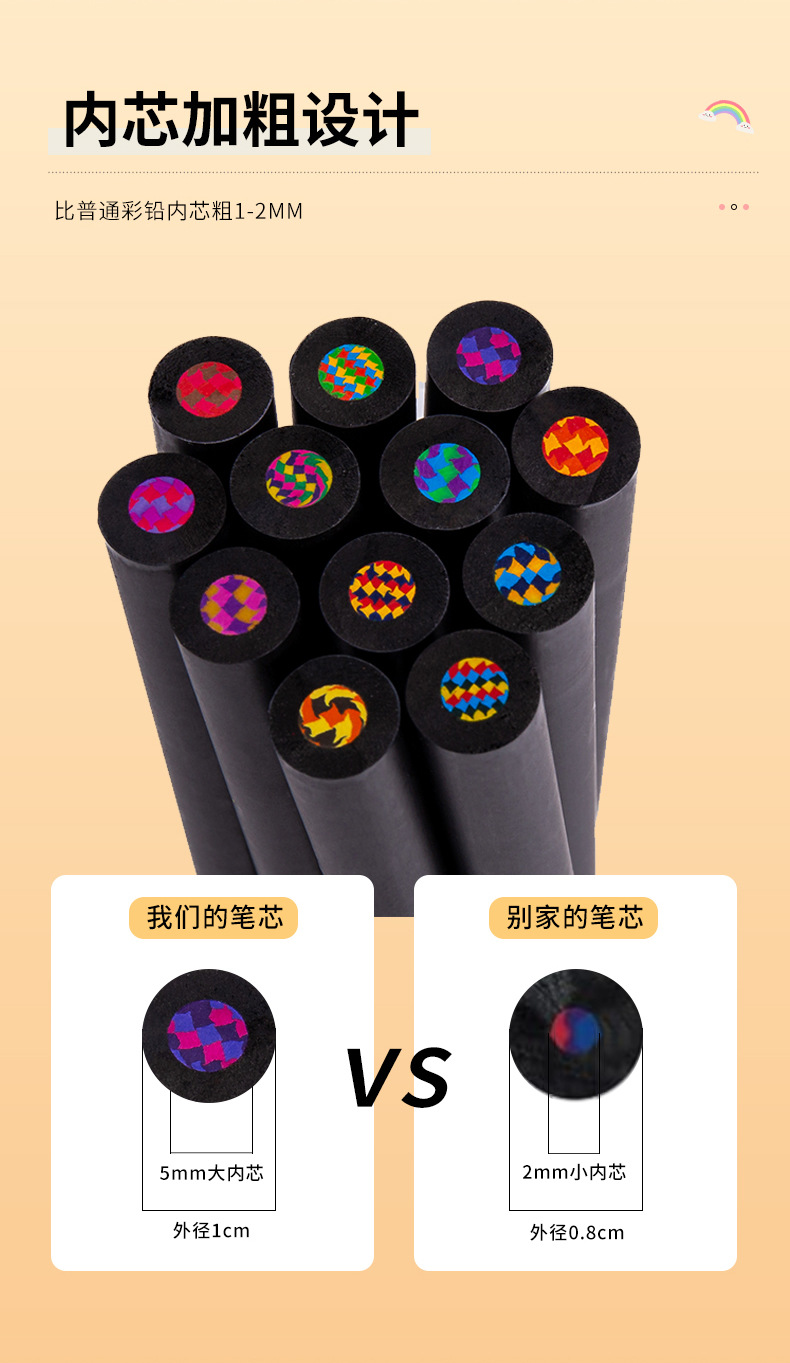 クロスボーダー供給原木七色同芯カラーペン爆発品虹子供絵画鉛筆3.3芯卸売り