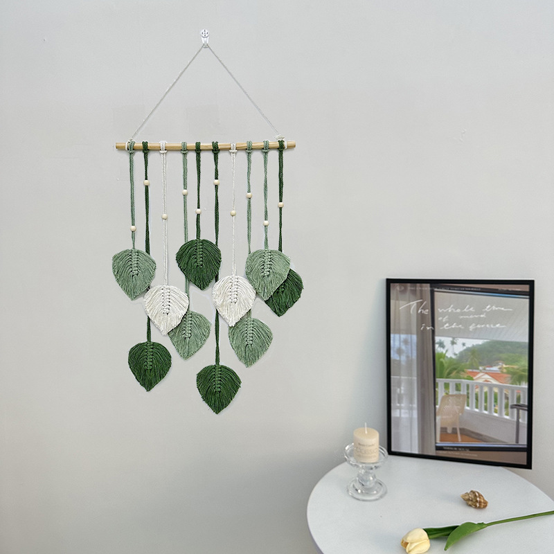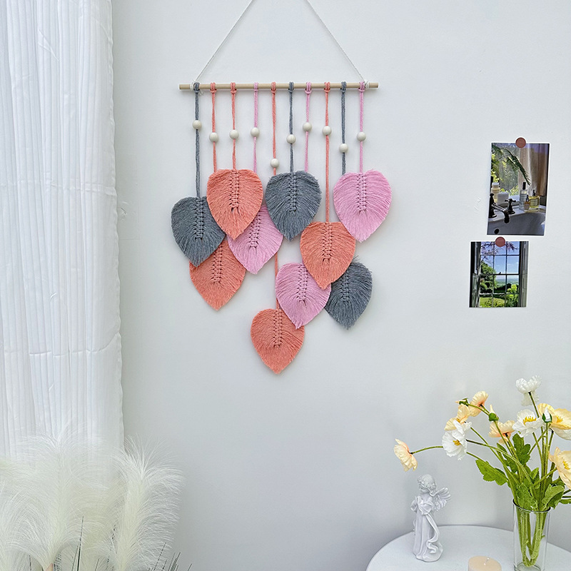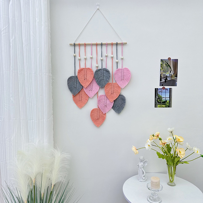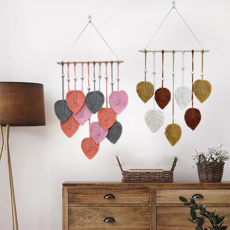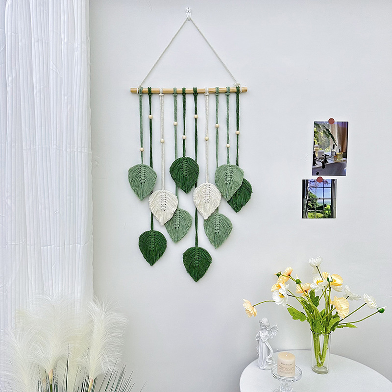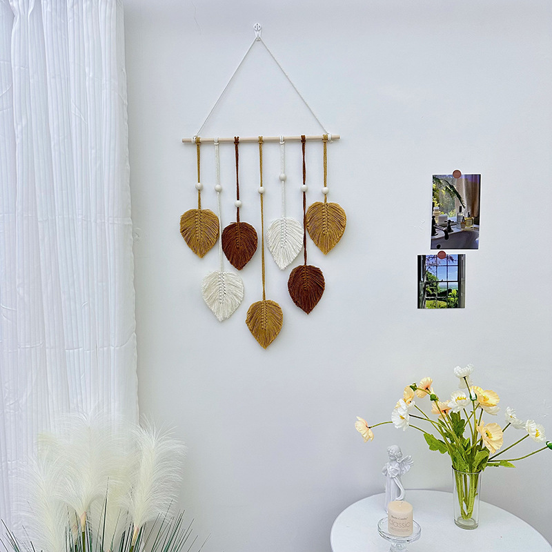 寝室ins壁面木の葉タペストリー壁掛け飾りヘミヤ手編み完成品部屋壁掛け民宿
